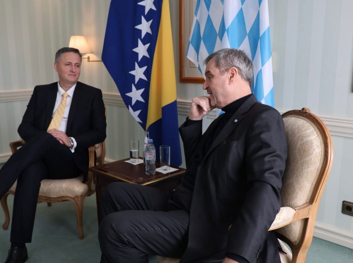 Bećirović se jutros u zvaničnom saopštenju iz njegovog kabineta pohvalio da je razgovarao sa Zederom te da su tokom sastanka razmijenjena mišljenja o aktuelnim političkim i ekonomskim pitanjima, kao i o mogućnostima daljeg razvoja saradnje BiH i njemačke pokrajine Bavarske, jedne od najrazvijenijih i najindustrijalizovanijih njemačkih i evropskih pokrajina u kojoj živi blizu 13 miliona stanovnika.
