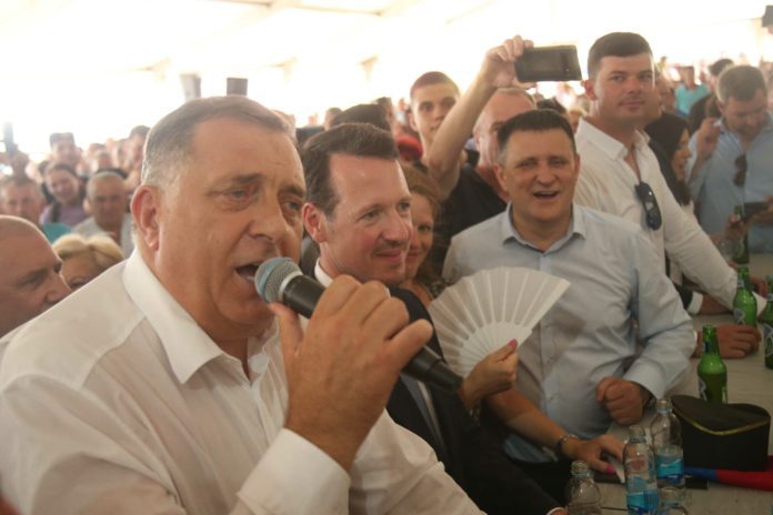 Odmah nakon govora pod gradskim šatorom „Kod Jablana“, predsjednik Republike Srpske Milorad Dodik se zaputio pod šatore, a narod za njim.