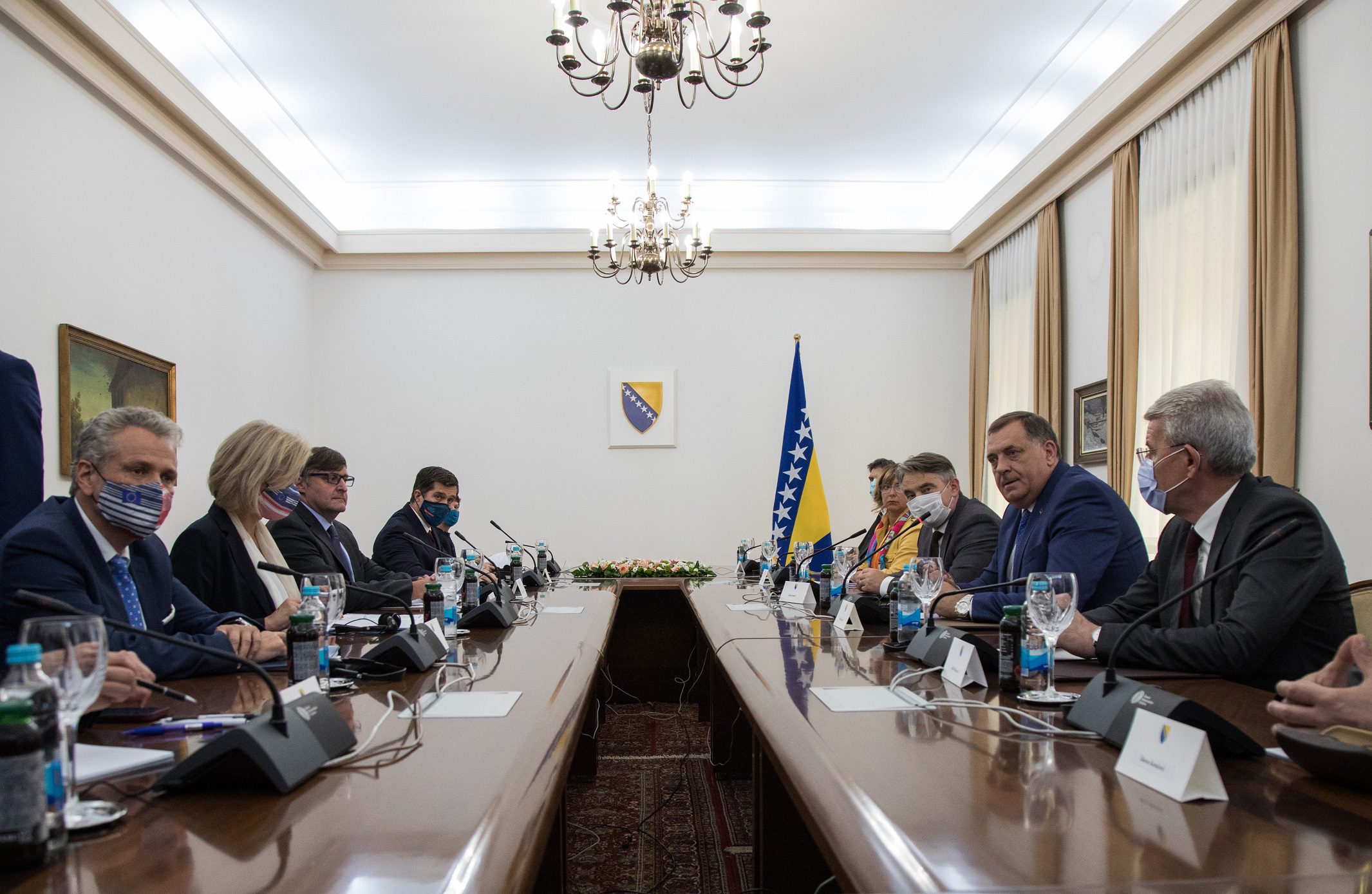 Na sastanku je razgovarano o aktuelnoj političkoj i ekonomskoj situaciji u BiH, te aktivnostima BiH na njenom evropskom putu. Razgovarano je i o izbornoj reformi koja je potrebna za iskorak BiH na putu ka EU. Razmijenjena su mišljenja o pitanjima vladavine prava, provedbi svih presuda domaćih i evropskih sudova koji se odnose na Izborni zakon BiH.