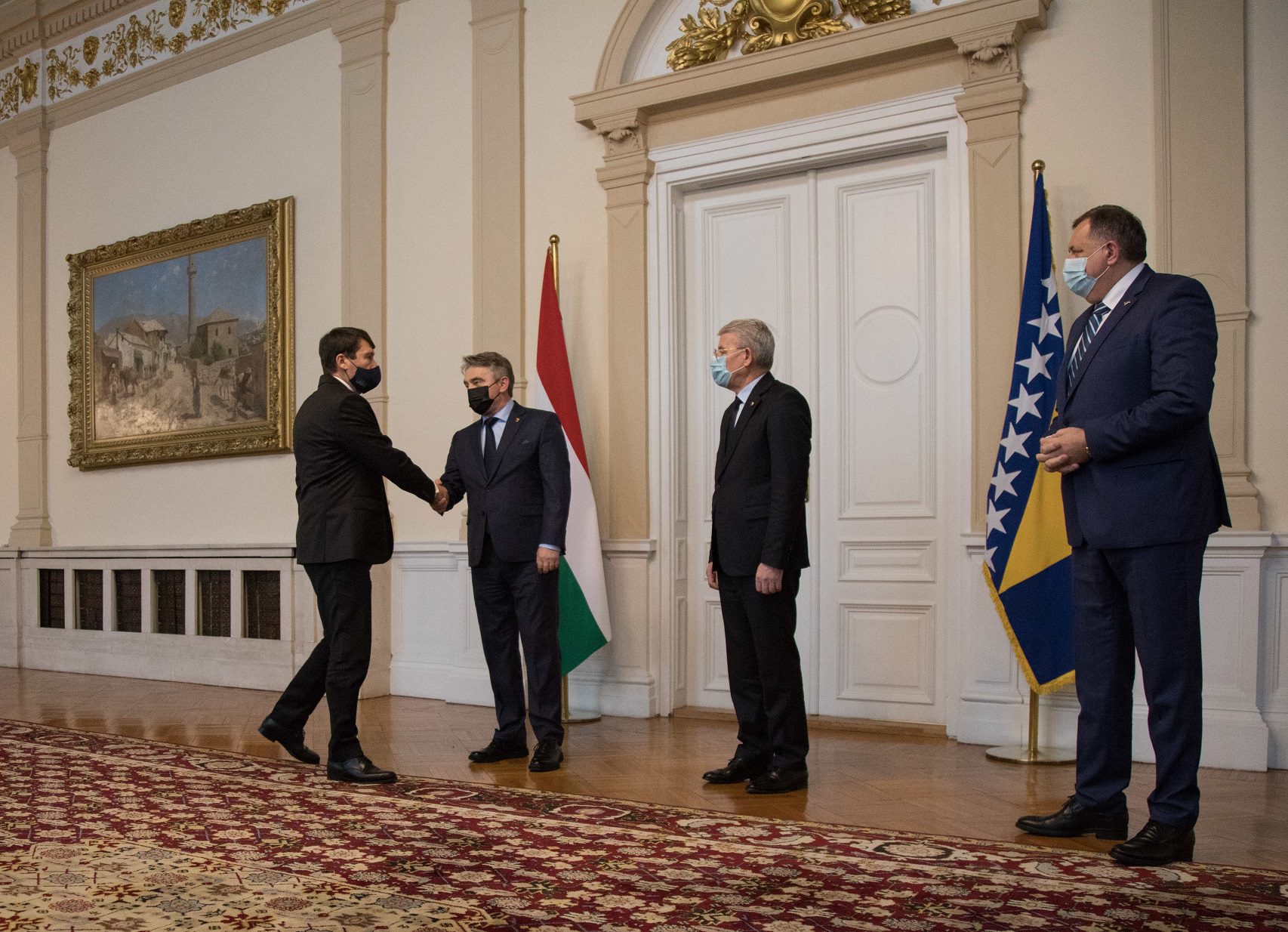 Članovi Predsjedništva BiH su razgovarali sa predsjednikom Janošem koji boravi u posjeti mađarskim vojnicima u sastavu EUFOR-a u Bosni i Hercegovini. Ovom prilikom su zahvalili na angažmanu mađarskog kontingenta u misiji očuvanja mira i stabilnosti u BiH. Članovi Predsjedništva BiH su istakli i značajnu ulogu Mađarske u okviru Višegradske grupe, naročito sada, kada predsjedava Grupom.