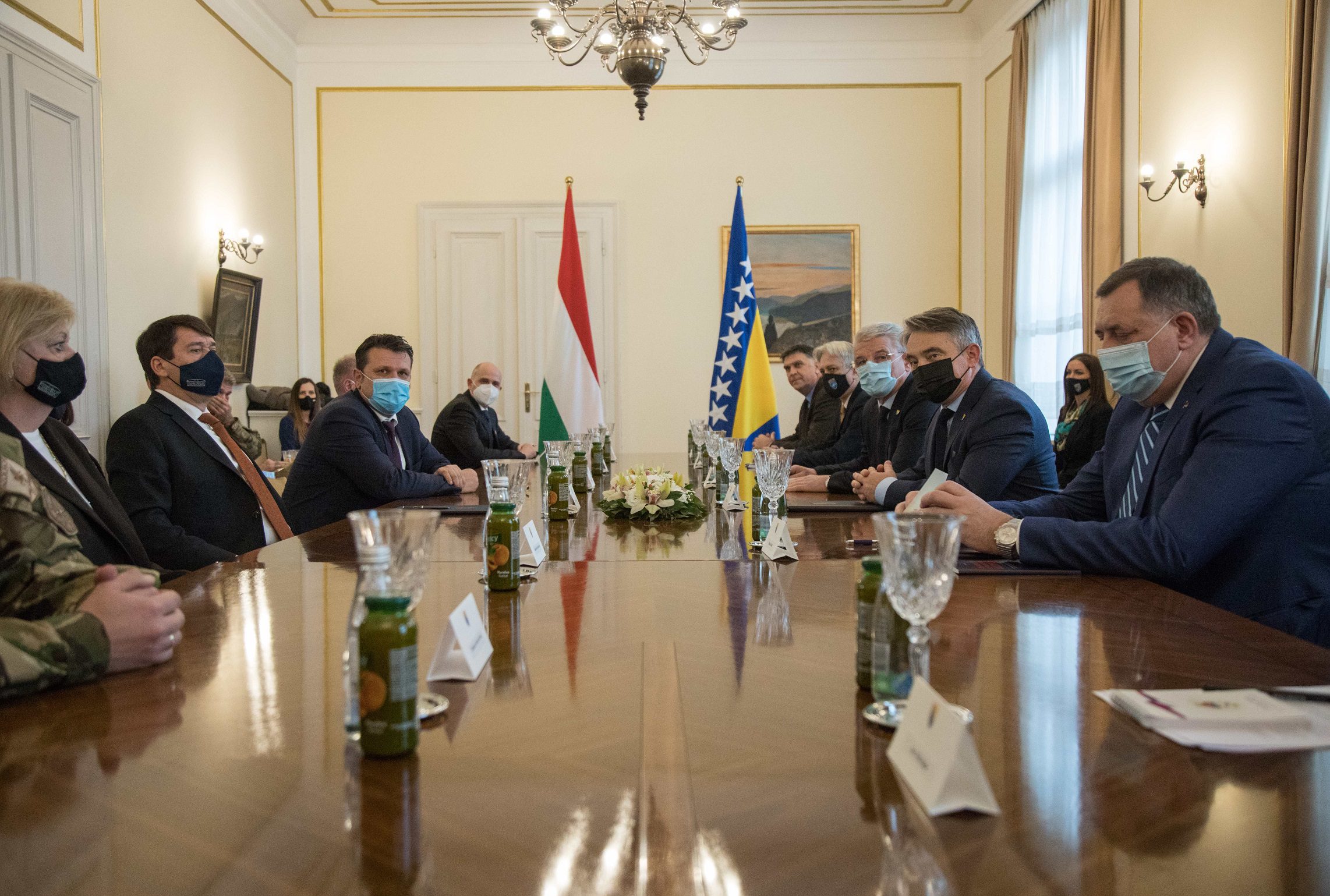 Teme razgovora su bili bilateralni odnosi između Bosne i Hercegovine i Mađarske, pandemija Kovidom-19, migracije na evropskom kontinentu i demografska slika u BiH i Mađarskoj. Članovi Predsjedništva BiH su pozdravili dobre bilateralne odnose i saradnju te izrazili nadu da će se ona nastaviti i u budućnosti. U tom kontekstu podržali su razvoj ukupnih odnosa u svim oblastima od zajedničkog interesa, naročito na političkom, privrednom i kulturnom planu.