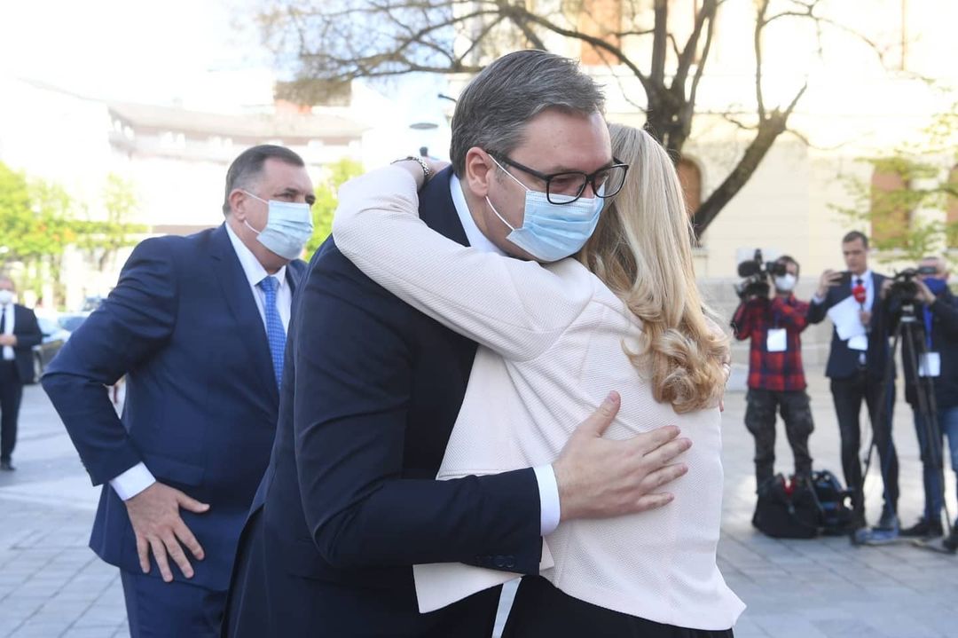 U Palati Republike u Banjaluci održan je sastanak predsjednice Republike Srpske Željke Cvijanović i srpskog člana i predsjedavajućeg Predsjedništva BiH Milorada Dodika sa predsjednikom Srbije Aleksandrom Vučićem.