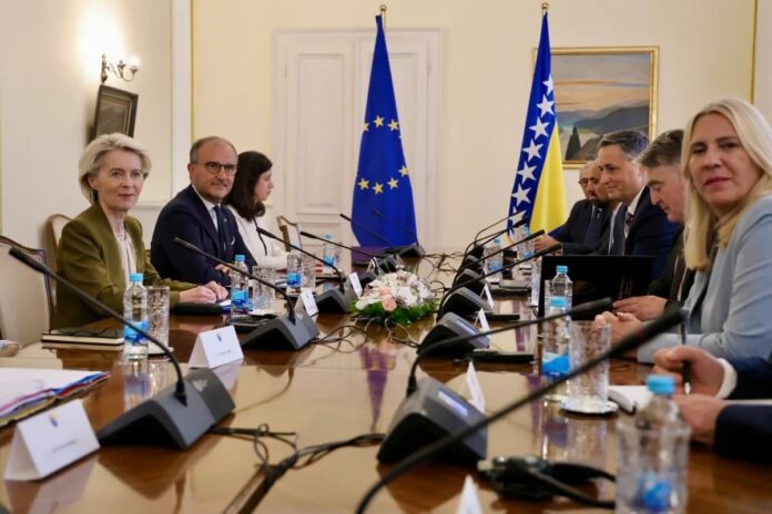 Članovi Predsjedništva BiH sastali su se danas u Sarajevu sa predsjednikom Evropske komisije Ursulom fon der Lajen.