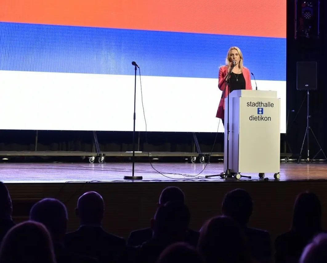 Prethodno je prisustvovala obilježavanju Dana Republike Srpske u Cirihu u organizaciji srpske zajednice u Švajcarskoj.