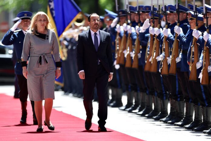 Srpski član i predsjedavajuća Predsjedništva BiH Željka Cvijanović dočekala je danas u Sarajevu predsjednika Kipra Nikosa Hristodulidesa, koji je stigao u zvaničnu posjetu BiH.