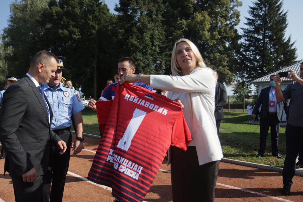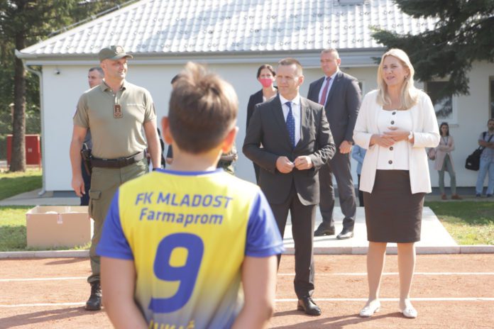 Predsjednik Republike Srpske Željka Cvijanović i ministar unutrašnjih poslova Srpske Dragan Lukač otvorili su danas teren za fudbal u Centru za obuku Ministarstva unutrašnjih poslova (MUP) Republike Srpske u banjalučkom naselju Zalužani.