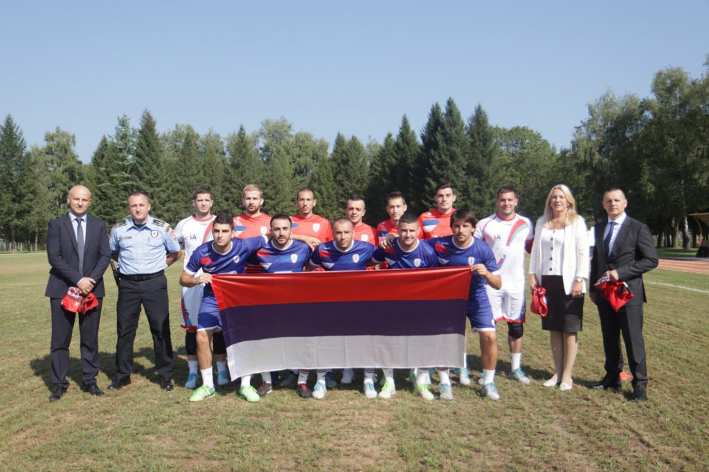 Cvijanovićeva i Lukač uručili su i lopte fudbalerima Fudbalskog kluba (FK) „Policajac“, od kojih su na poklon dobili dresove.