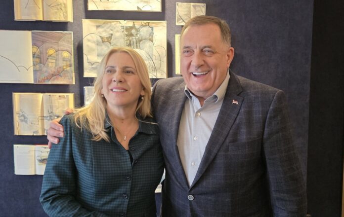 Tu smo, napisala je srpski član Predsjedništva BiH Željka Cvijanović i objavila fotografiju sa liderom SNSD-a Miloradom Dodikom u Vašingtonu.