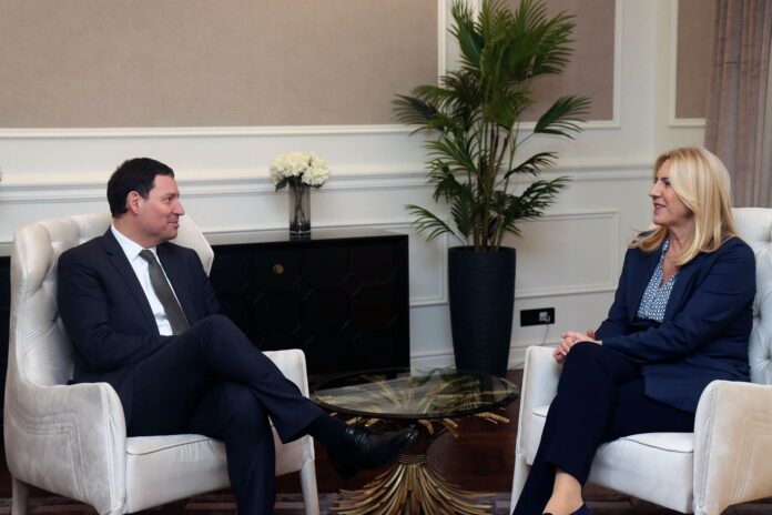 Srpski član i predsjedavajuća Predsjedništva BiH Željka Cvijanović ukazala je tokom današnjeg sastanka u Banjaluci sa specijalnim izaslanikom Slovenije za Balkan Anžejem Frangešem na važnost uvažavanja ustavne pozicije različitih nivoa vlasti i ujednačenog pristupa EU prema svima u BiH.
