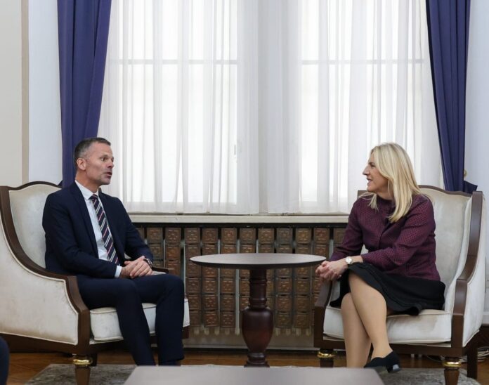 Predsjedavajuća Predsjedništva BiH Željka Cvijanović istakla je u razgovoru sa novoimenovanim ambasadorom Danske u BiH Ageom Sandalom Molerom opredijeljenost institucija Republike Srpske za ubrzanje evropskog puta, uz apsolutno poštovanje Dejtonskog mirovnog sporazuma i ustavnih nadležnosti svih nivoa vlasti u BiH.