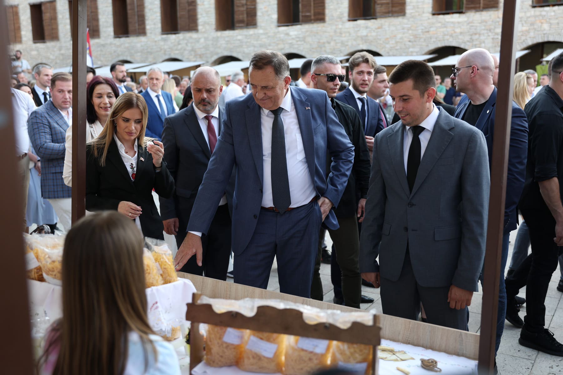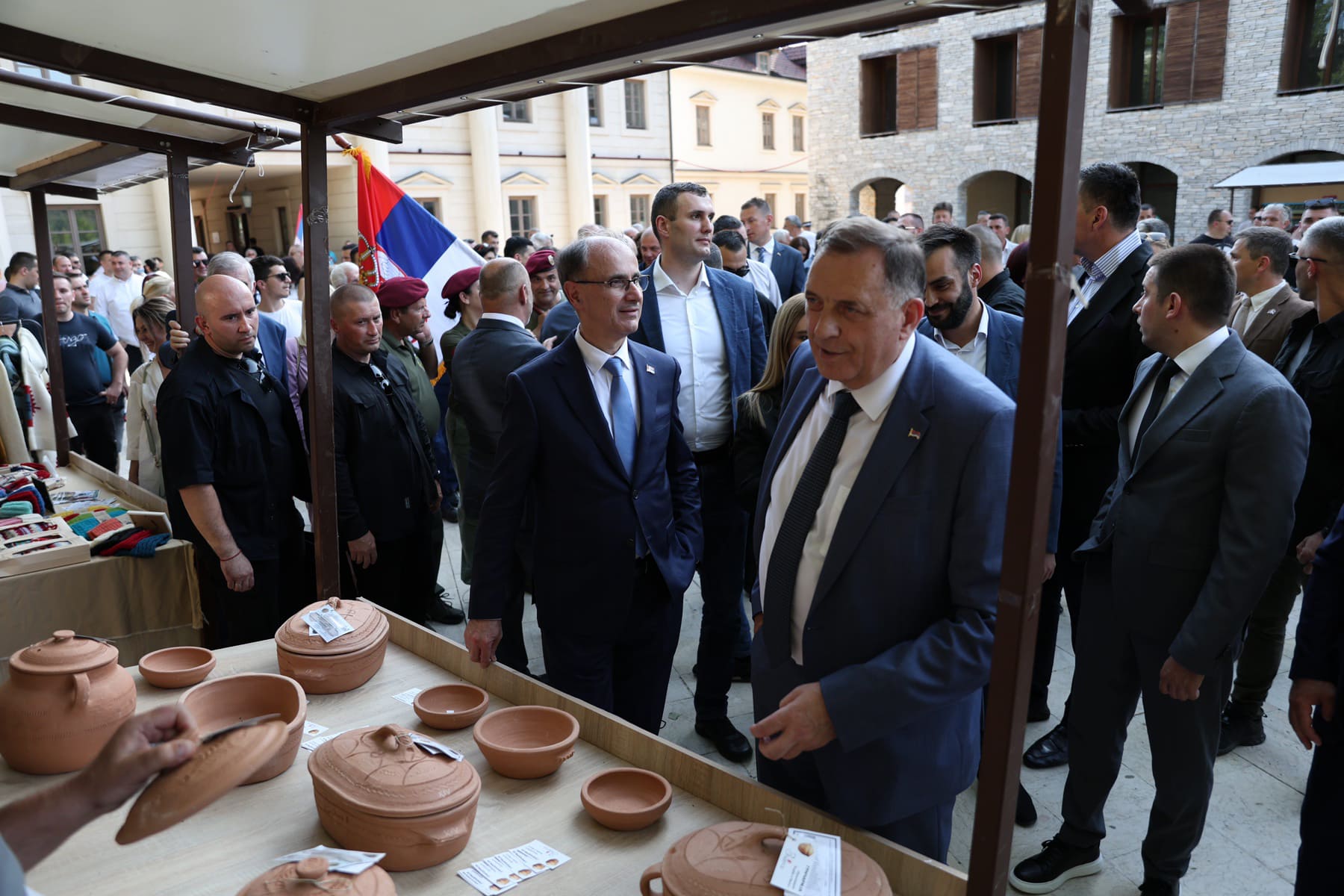 Delegacije Republike Srpske i Srbije, koje danas u Višegradu prisustvuju manifestaciji „Susret na Drini – Mostovi srpskog jedinstva“ obišli su štandove na kojima su predstavljeni domaći proizvodi, umjetnički zanati, izdavačka djelatnost, promovisano kulturno nasljeđe i turizam.