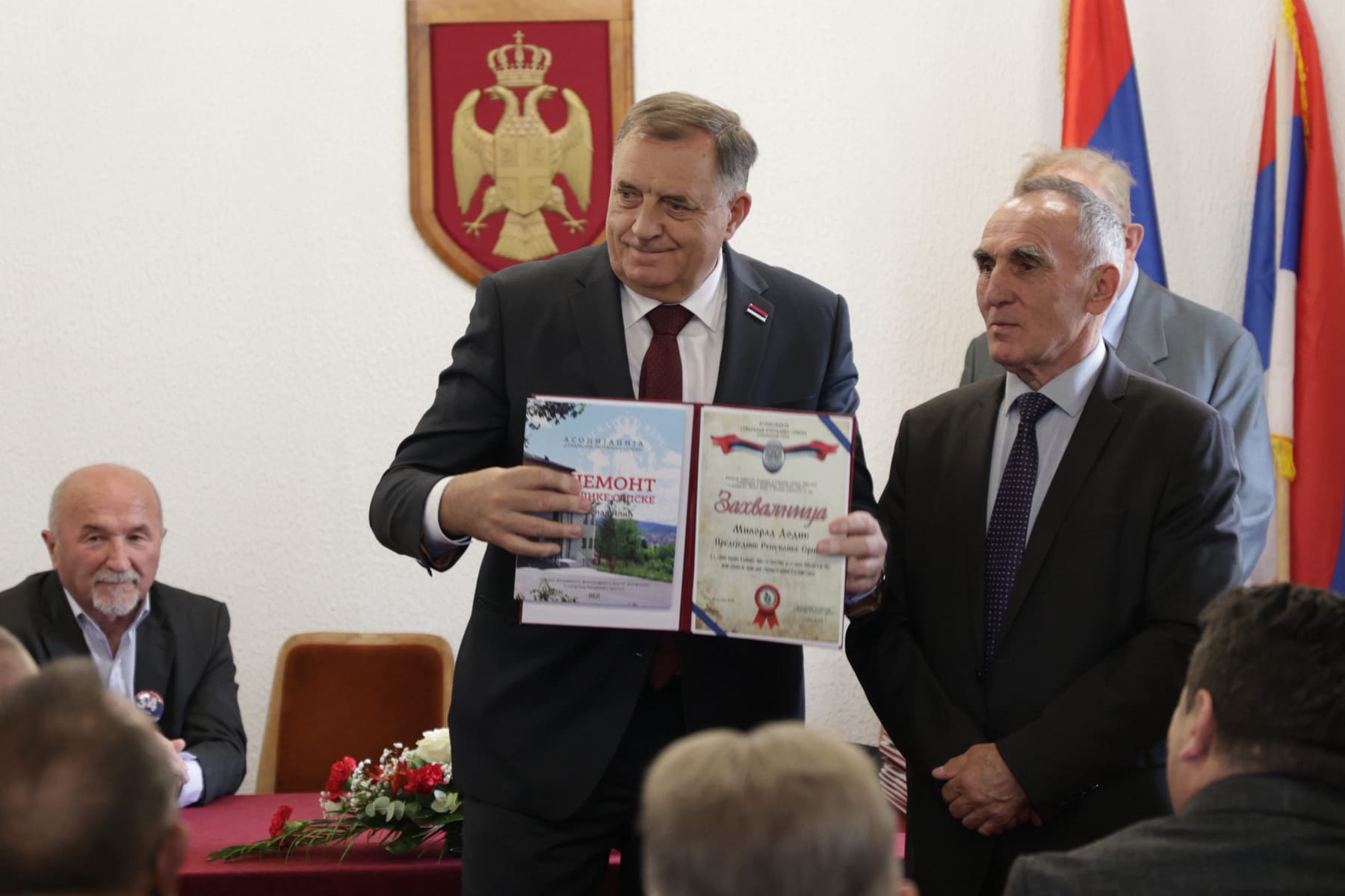Predsjedniku Miloradu Dodiku danas je na Palama uručena zahvalnica za doprinos u realizaciji istorijskog projekta – opremanja Doma Republike Srpske na Palama i izgradnji spomen-obilježja posvećenog stvaraocima i braniocima Republike Srpske.