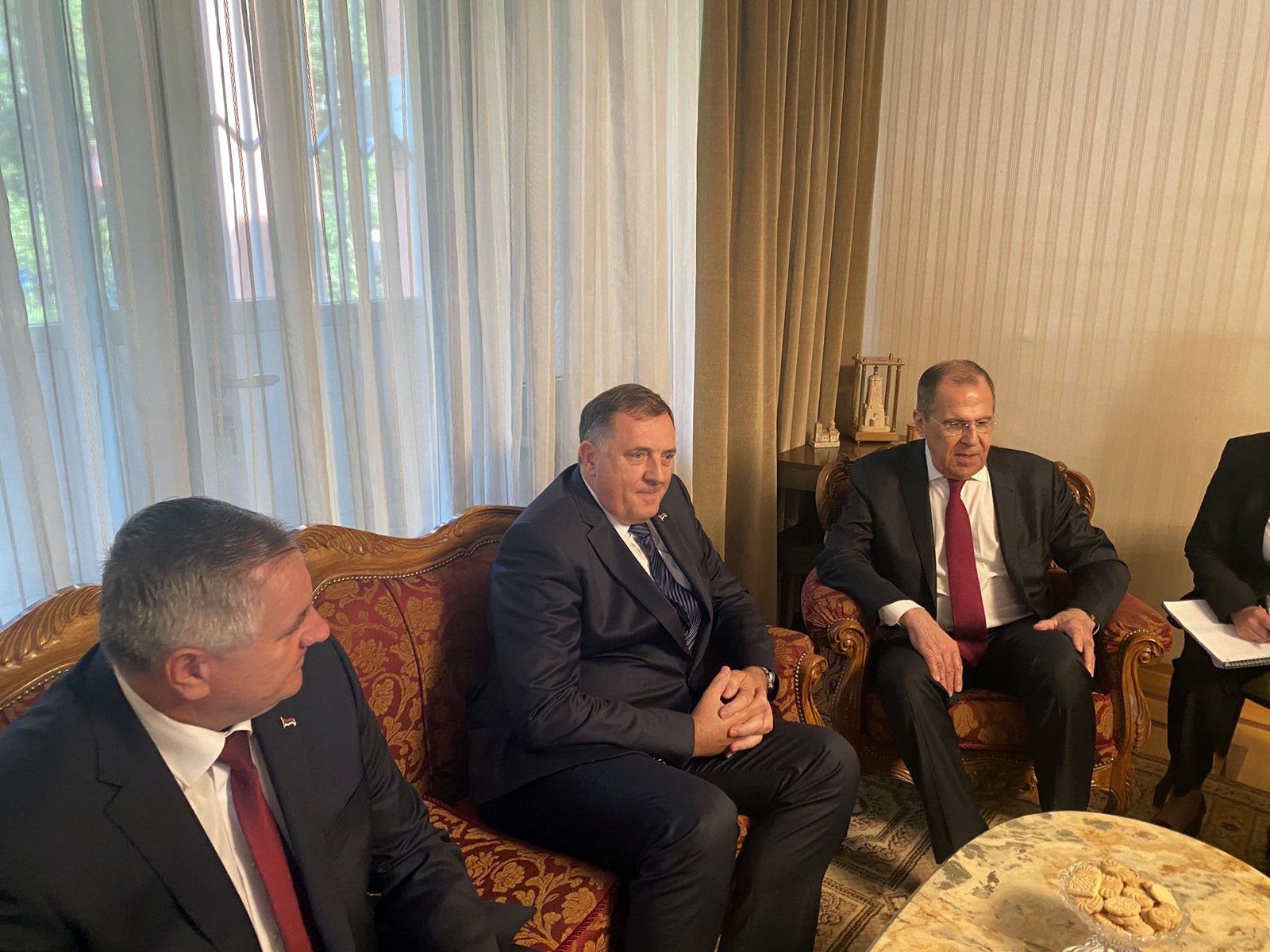 U Ambasadi Rusije u Beogradu održan je sastanak ministra spoljnih poslova Rusije Sergeja Lavrova sa delegacijom Republike Srpske koju je predvodio srpski član Predsjedništva BiH Milorad Dodik.