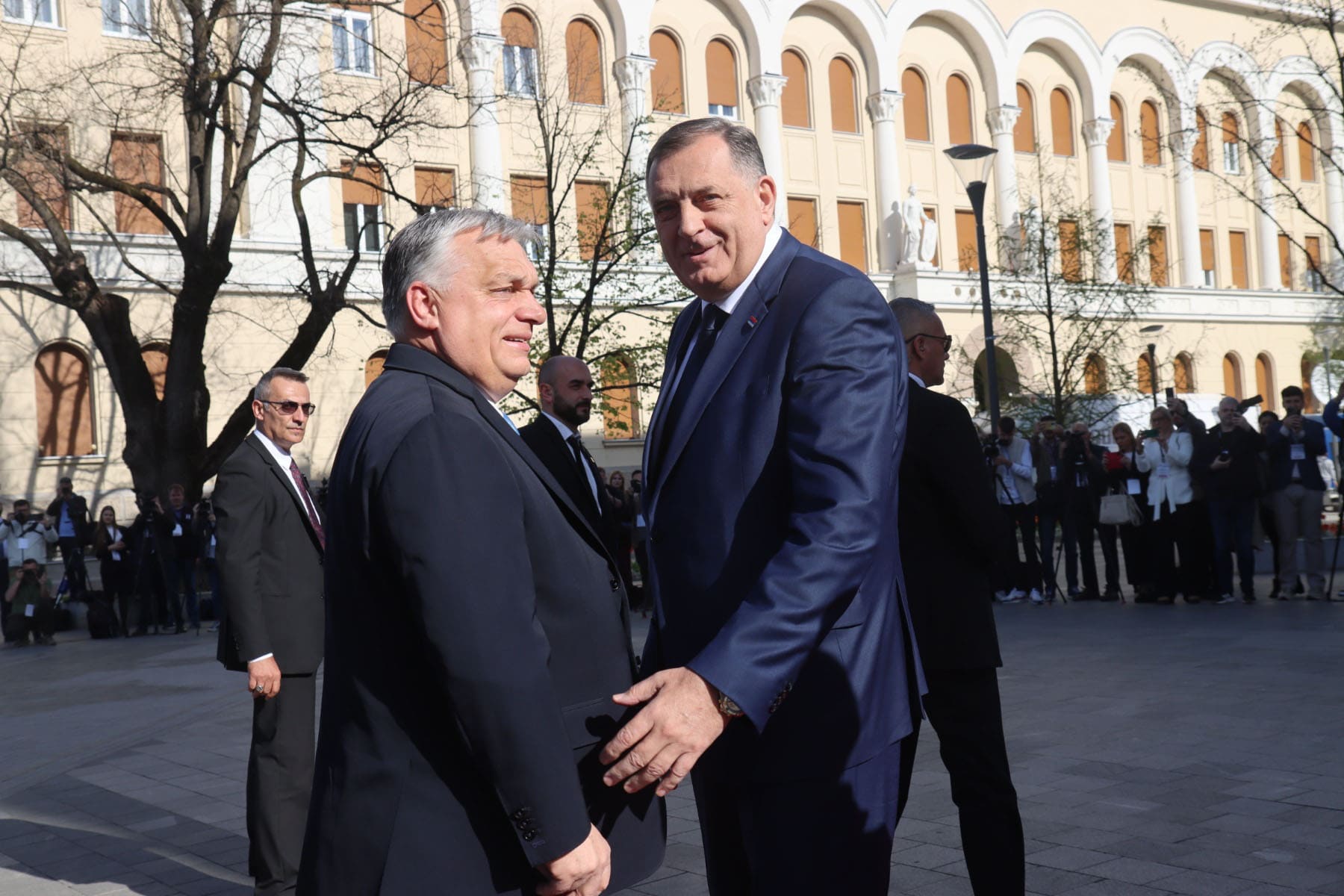 Predsjednik Republike Srpske Milorad Dodik dočekao je ispred Palate Republike u Banjaluci mađarskog premijera Viktora Orbana, koji predvodi delegaciju Vlade Mađarske i privrednika u posjeti Srpskoj.