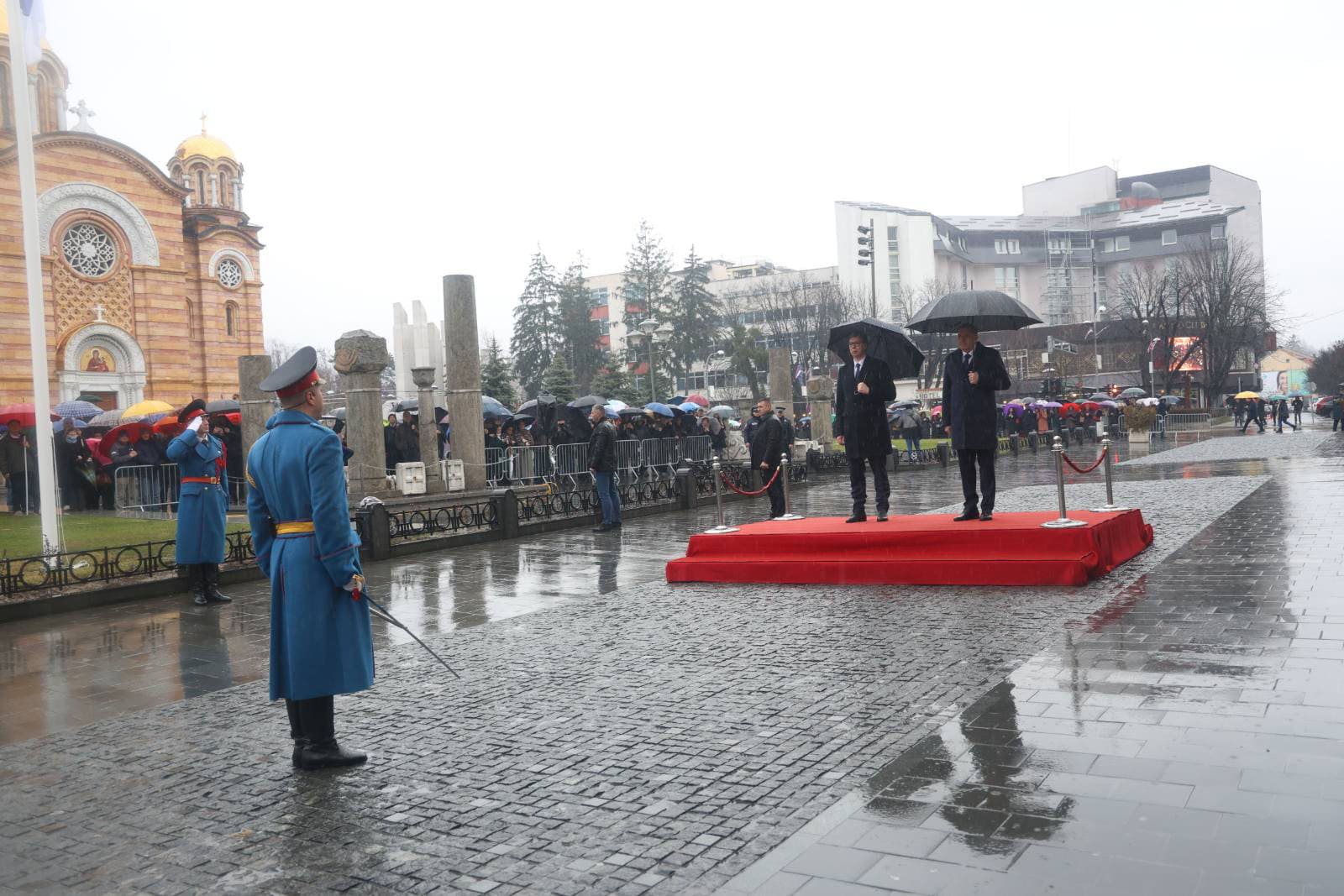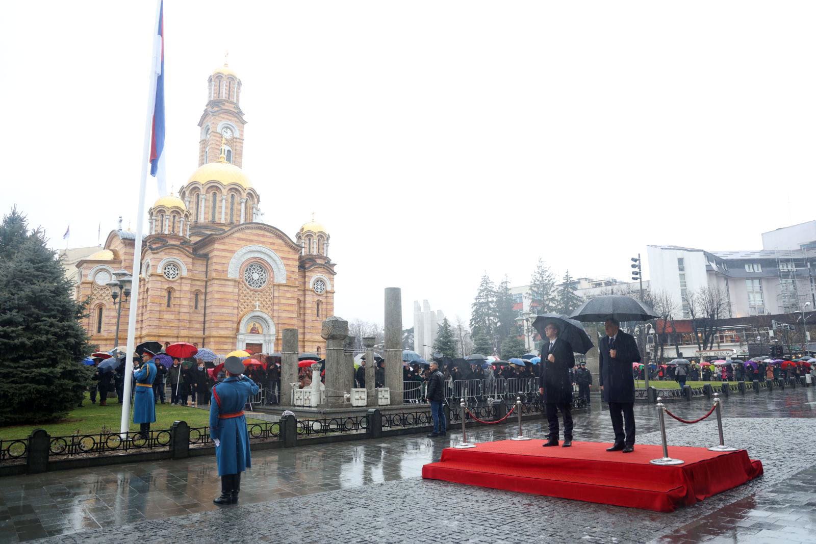 Dodik i Vučić svečano su podigli zastave Republike Srpske i Srbije na dva jarbola koja su postavljena ispred Palate Republike.