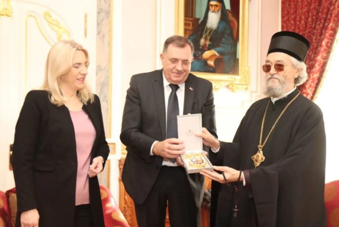 Predsjednik Republike Srpske Milorad Dodik i srpski član i predsjedavajuća Predsjedništva BiH Željka Cvijanović poklonili su danas Njegovom preosveštenstvu episkopu banjalučkom Jefremu panagiju presvete Bogorodice.