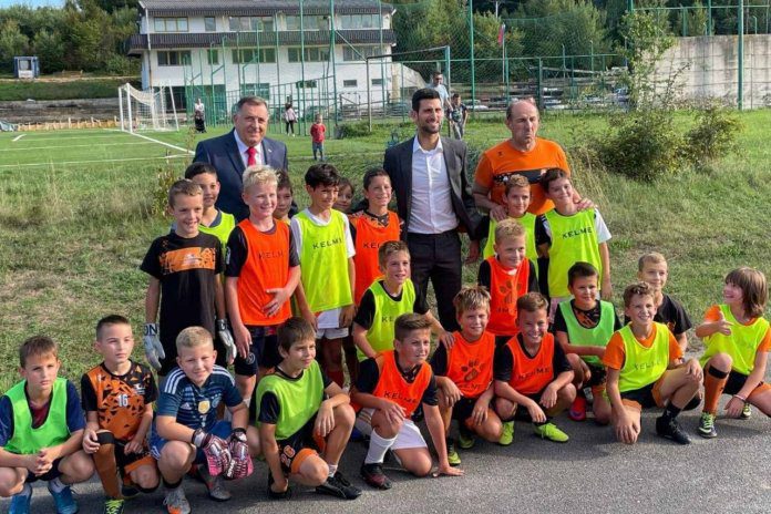 Srpski član Predsjedništva BiH Milorad Dodik i najbolji srpski i svjetski teniser Novak Đoković družili su se danas sa mališanima iz FK „Slavija“ i Škole fudbala „Tango“ iz Istočnog Sarajeva.