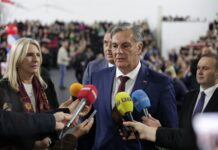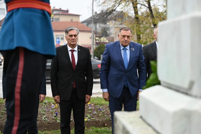 Dodik je vijenac položio u pratnji ministra za naučnotehnoški razvoj i visoko obrazovanje Republike Srpske Siniše Karana, premijera Srpske Save Minića i predsjednika Skupštine Brčko distrikta Siniše Milića.