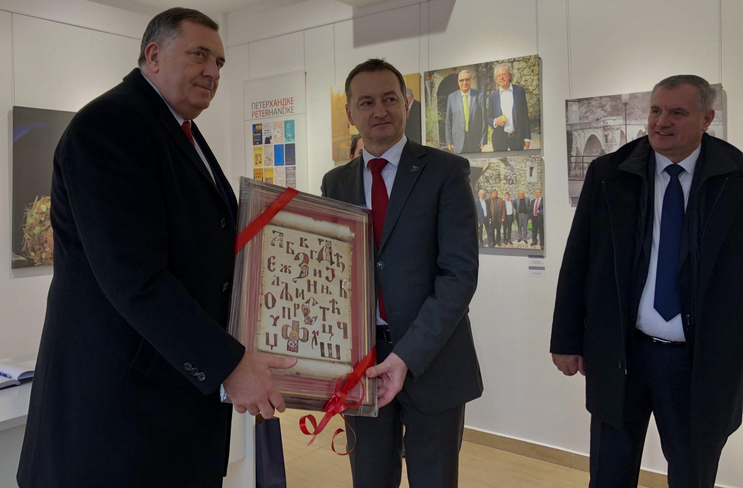 Srpski član Predsjedništva BiH Milorad Dodik i premijer Republike Srpske Radovan Višković danas su u Brčkom posjetili izložbu fotografija posvećenu nobelovcu Peteru Handkeu.