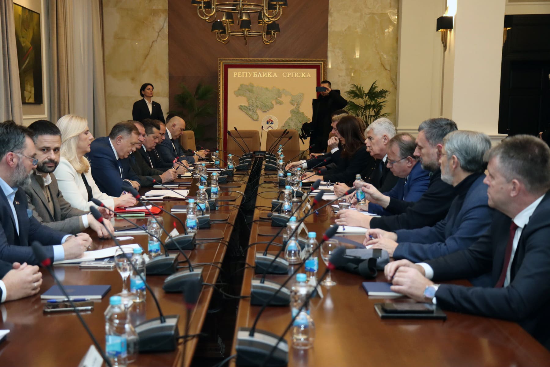 Sastanku su prisustvovali predsjednik Ujedinjene Srpske Nenad Stevandić, generalni sekretar DEMOS-a Boran Bosančić, te potpredsjednik HDZ-a BiH Borjana Krišto.