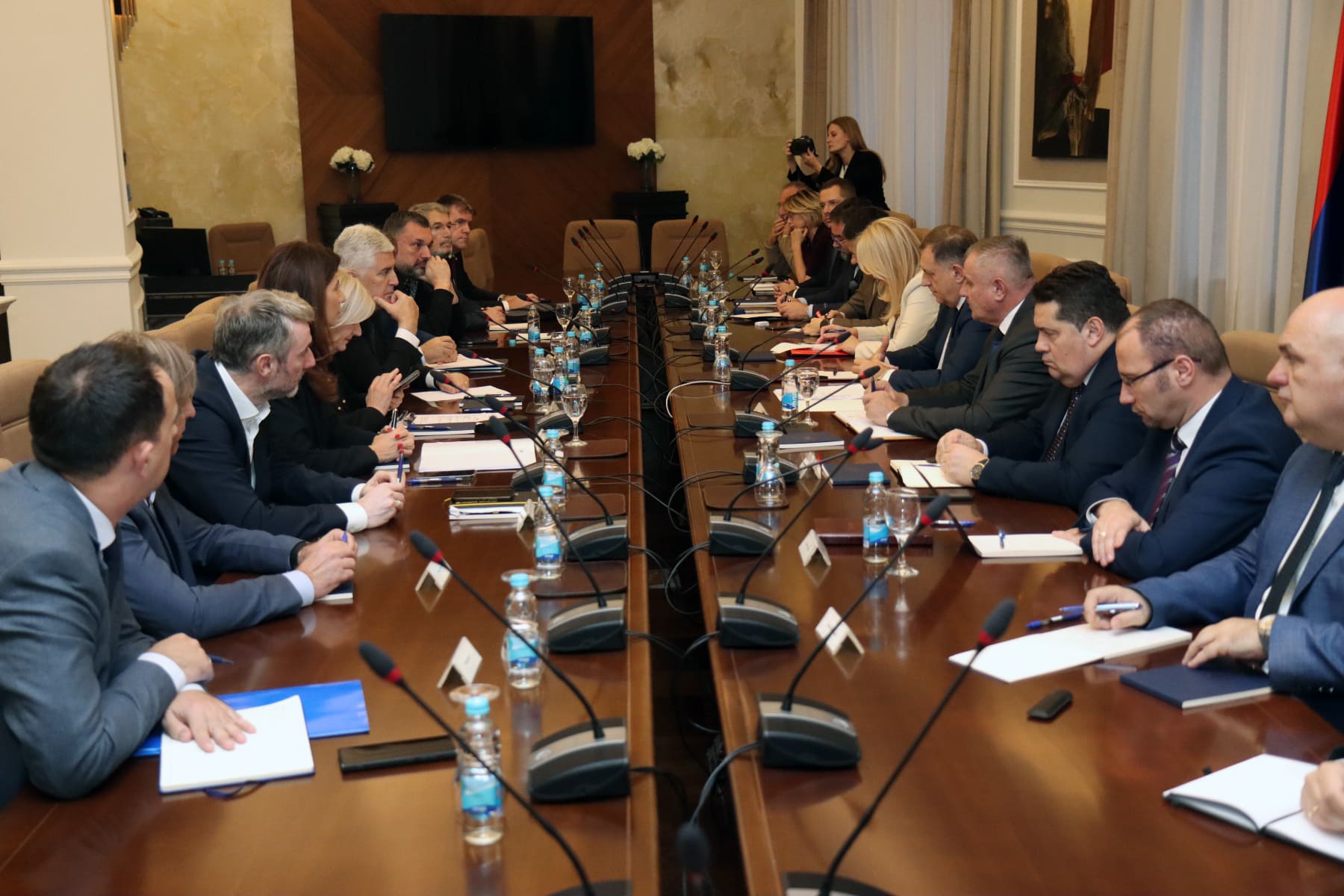 Sastanku u Palati Republike u Banjaluci prisustvovali su lideri SNSD-a Milorad Dodik, HDZ-a BiH Dragan Čović, te stranaka „trojke“ – SDP-a BiH Nermin Nikšić, Naroda i pravde Elmedin Konaković i Naše stranke Edin Forto.