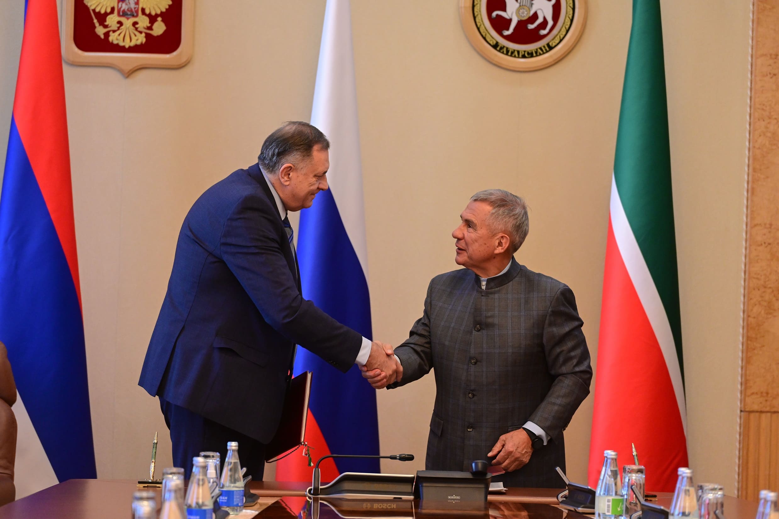 Predsjednik Republike Srpske Milorad Dodik istakao je danas na sastanku sa šefom Tatarstana Rustamom Minihanovom da je zahvalan za priliku da dođe u Kazanj na skup od svjetskog značaja – Samit šefova država BRIKS-a, kao i priliku da potvrdi veliko prijateljstvo koje je potrebno proširiti, javlja izvještač Srne iz Kazanja.