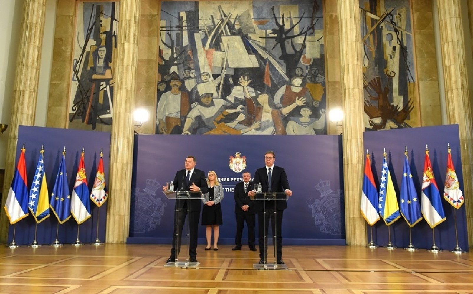 – To je ono o čemu mi razmišljamo i što nam niko ne može zabraniti. Šta god i kako bili u BiH. Republika Srpska smatra da smo mi u BiH slučajno tu zatečeni – rekao je Dodik poslije sastanka sa predsjednikom Srbije Aleksandrom Vučićem u Beogradu .