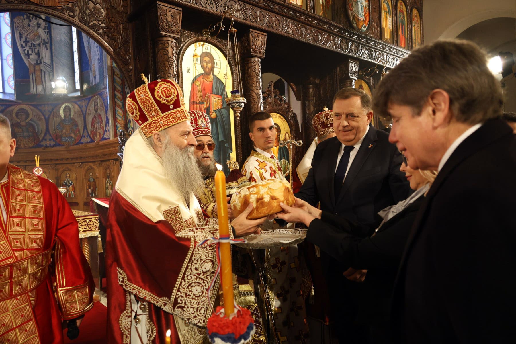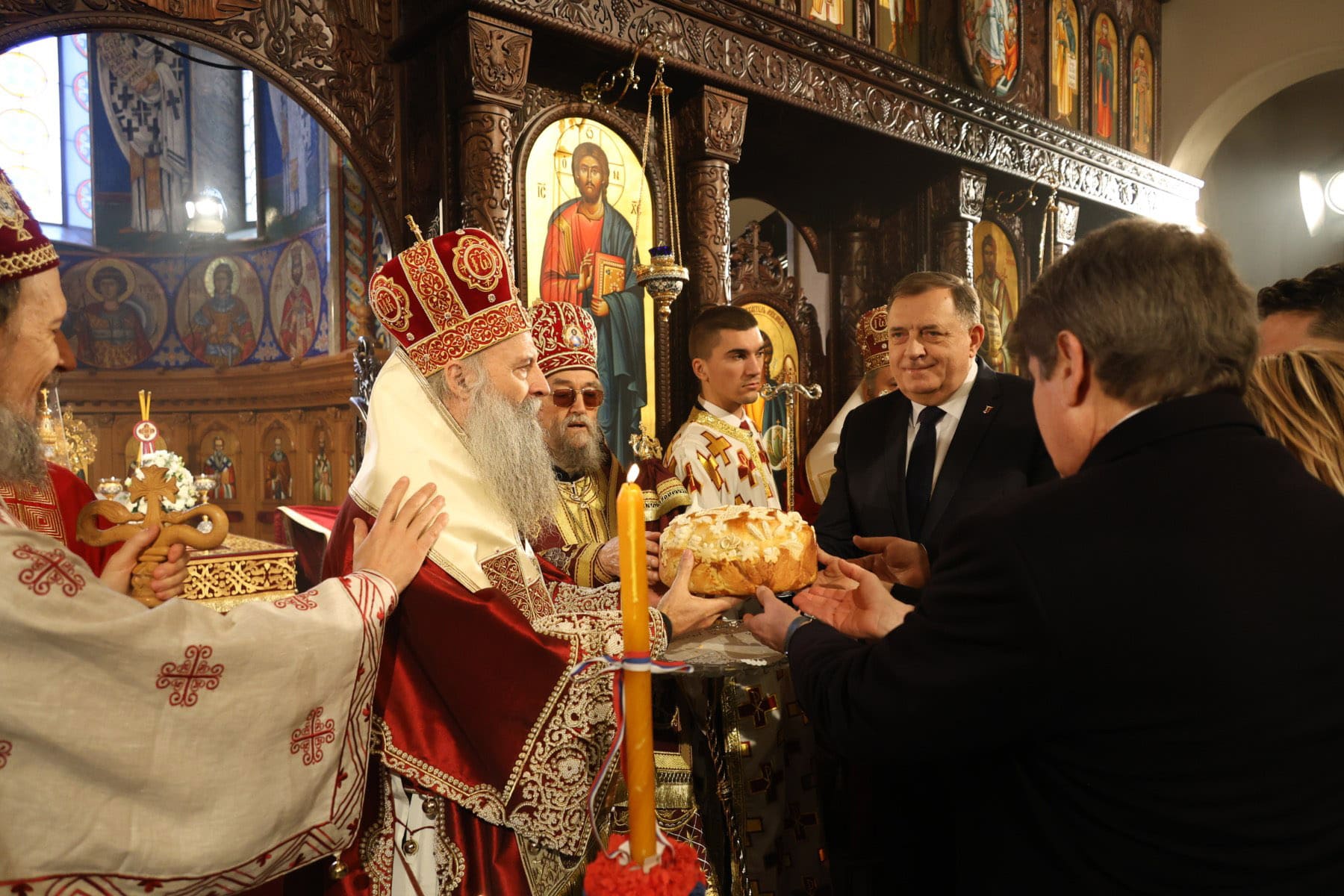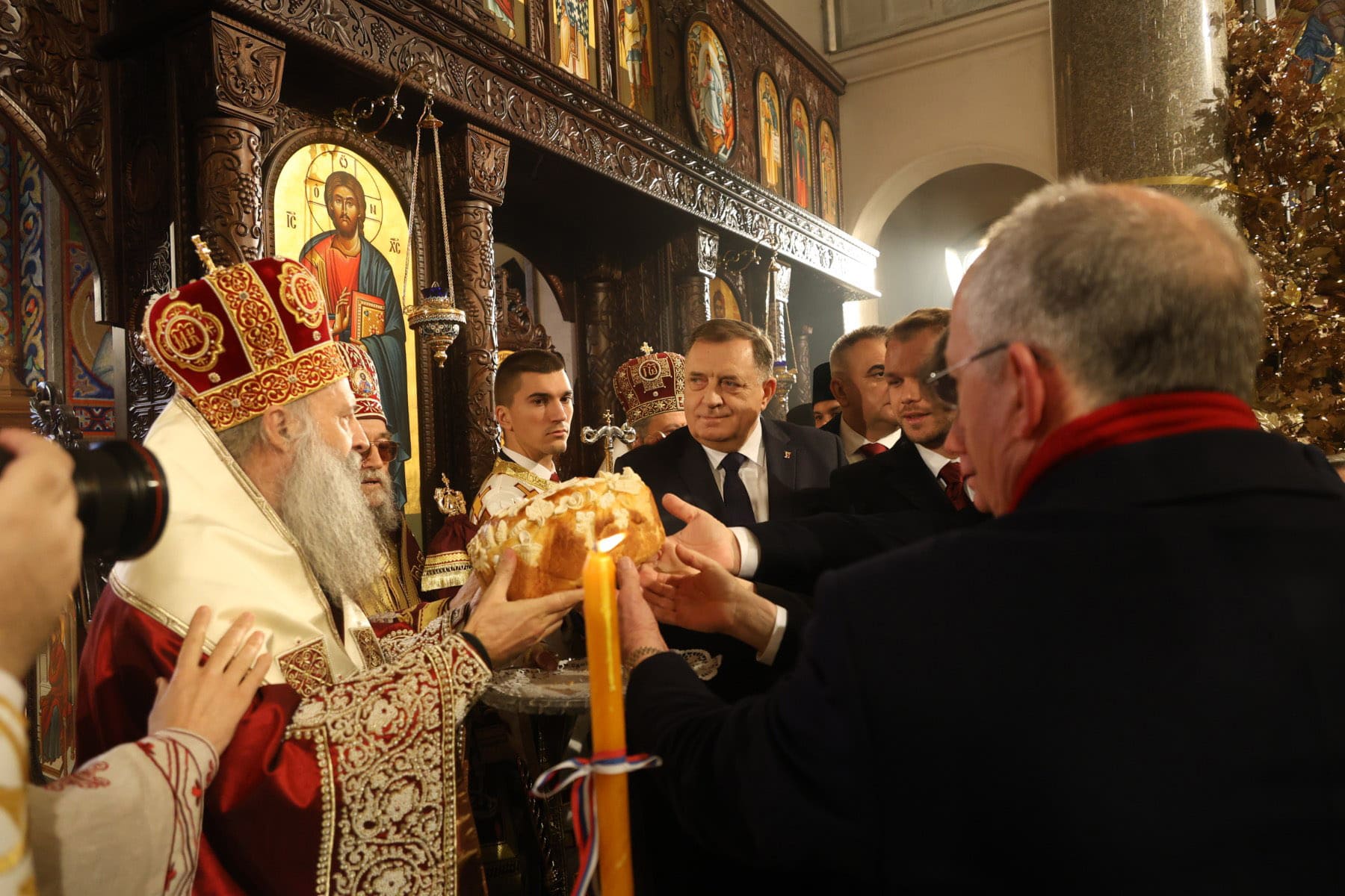 Dodik je danas prisustvovao Svetoj arhijerejskoj liturgiji povodom Svetog Stefana, koju je u Hramu Hrista Spasitelja u Banjaluci služio Njegova svetost patrijarh srpski Porfirije.