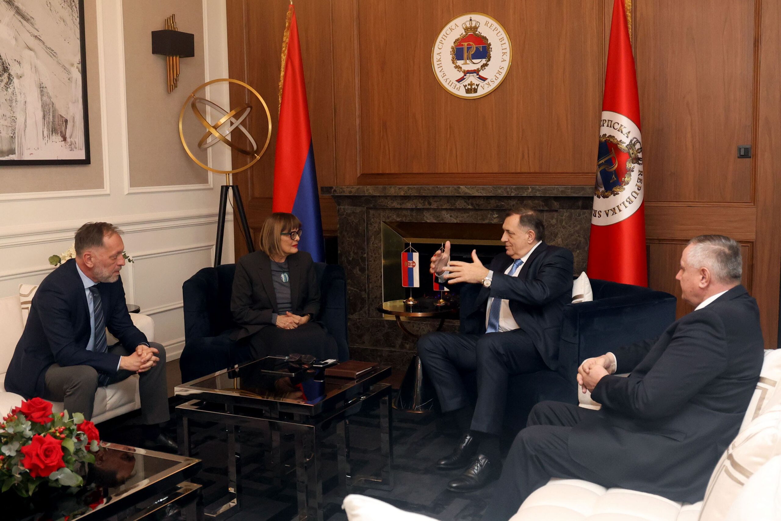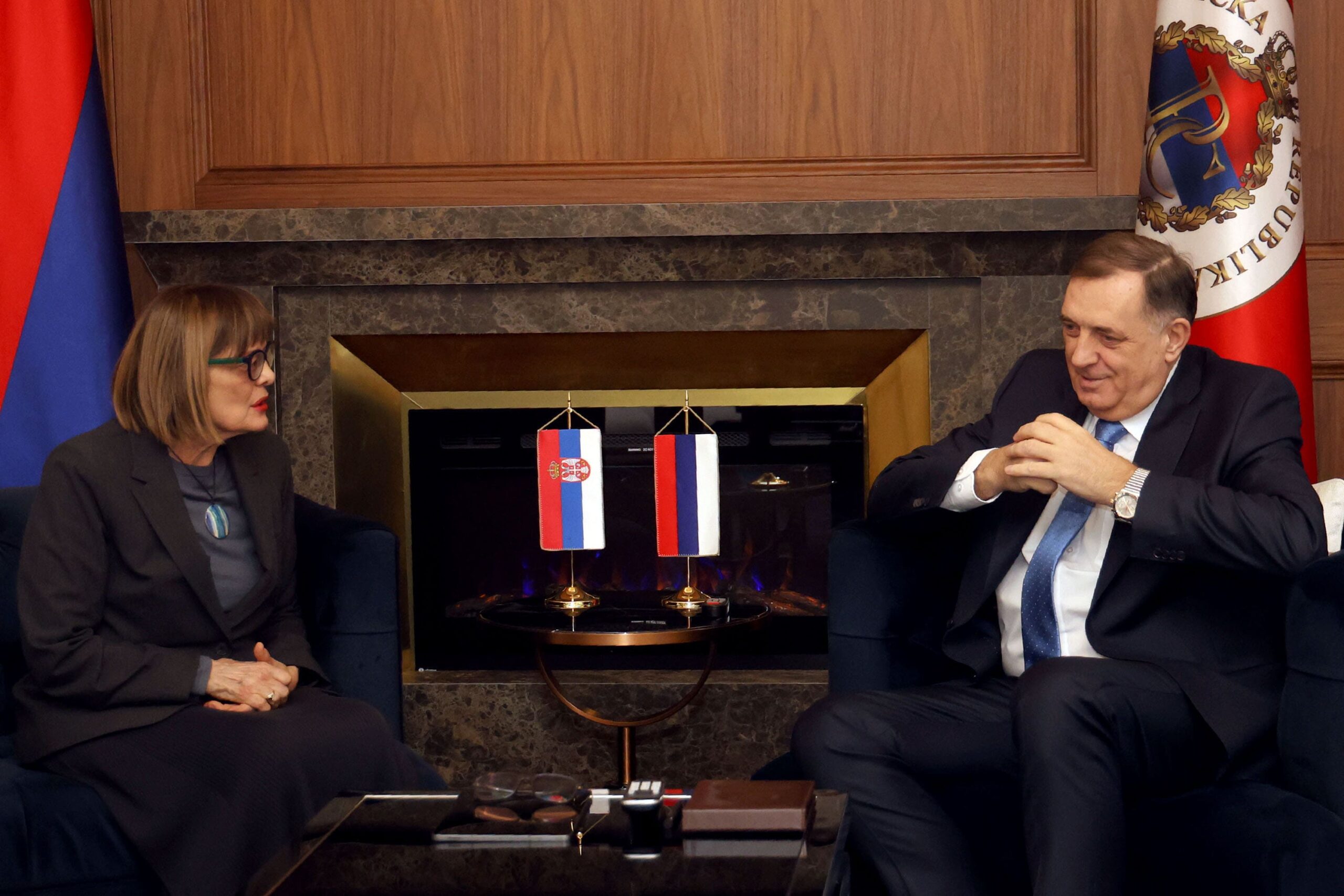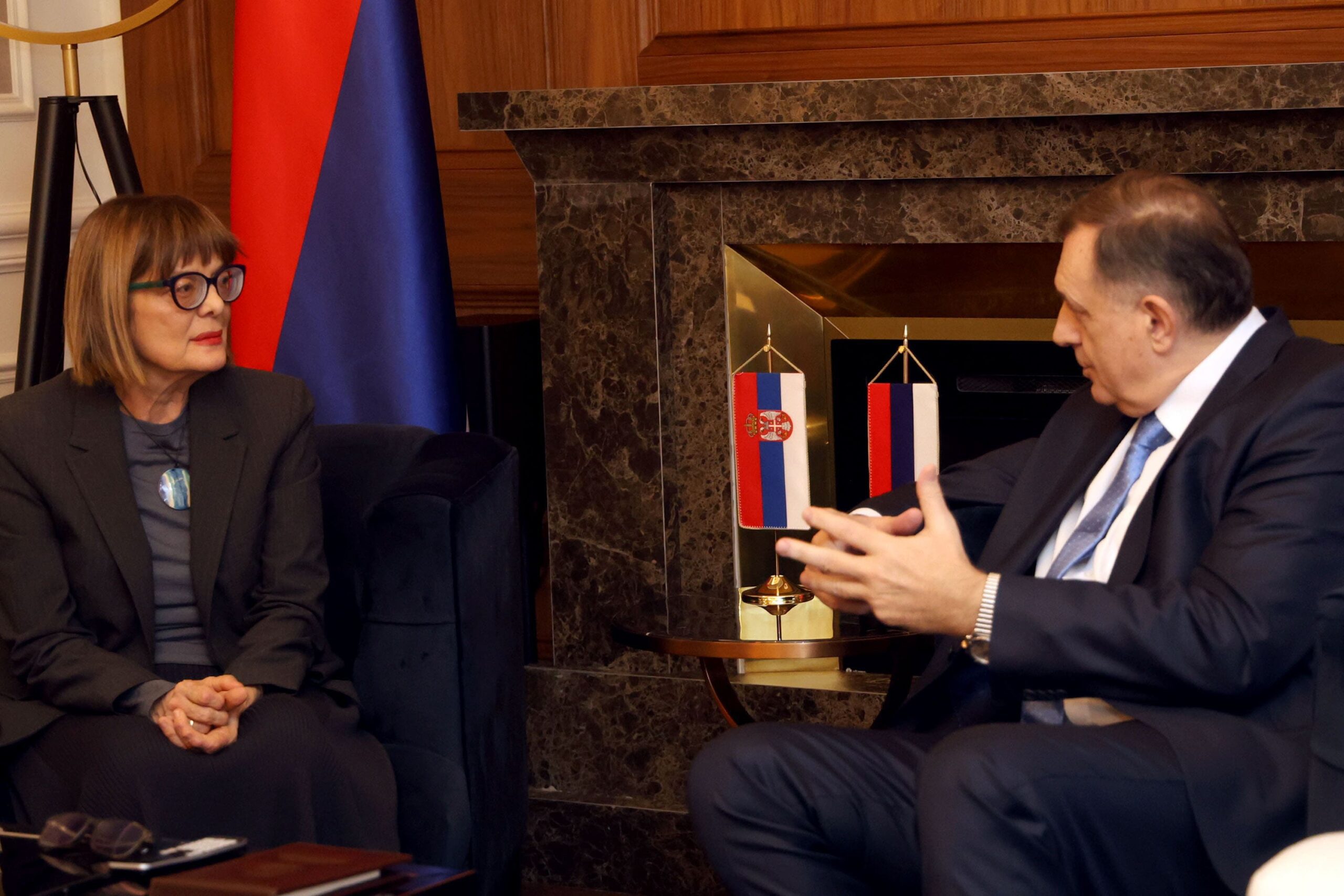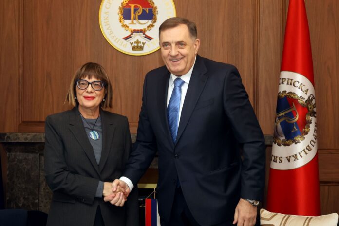 Dodik je danas u Banjaluci razgovarao sa predsjednikom Pokrajinske vlade Vojvodine Majom Gojković, koju je upoznao o odgovoru institucija Republike Srpske na pravno nasilje koje se u kontinuitetu provodi nad Srpskom, a čija je kulminacija politički i montiran proces pred Sudom BiH, saopšteno je iz Kabineta predsjednika Srpske.