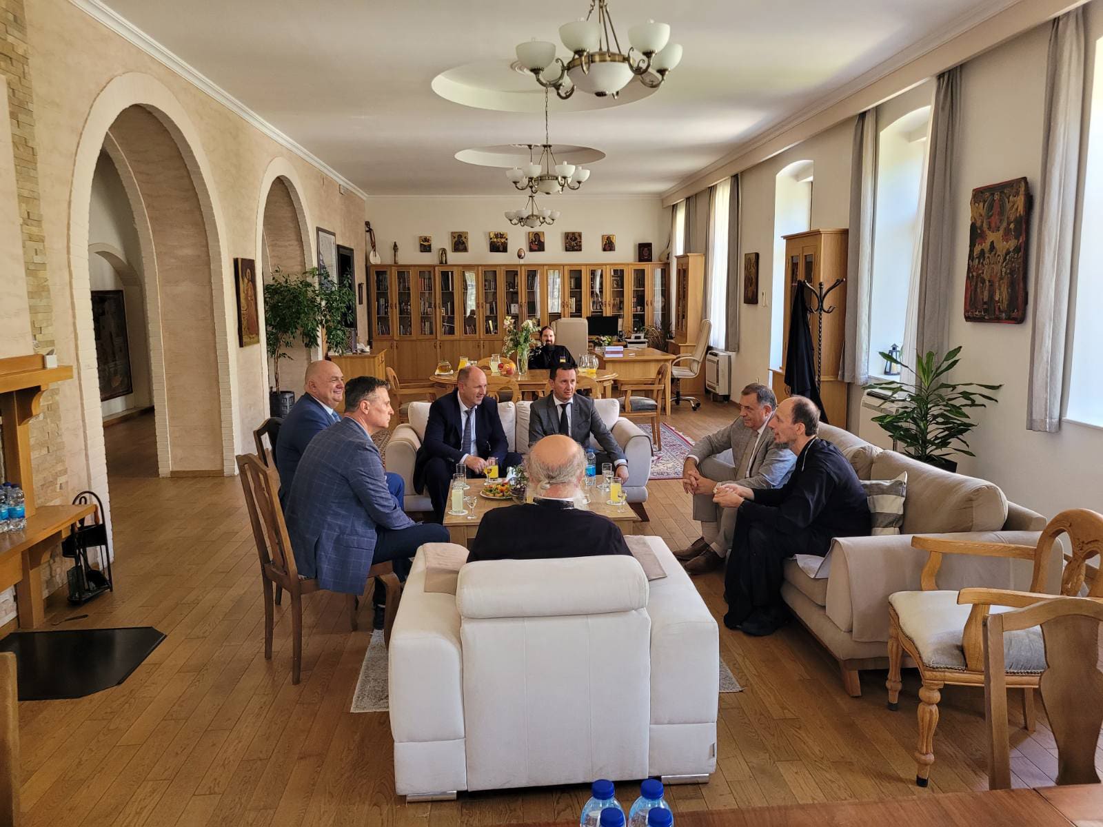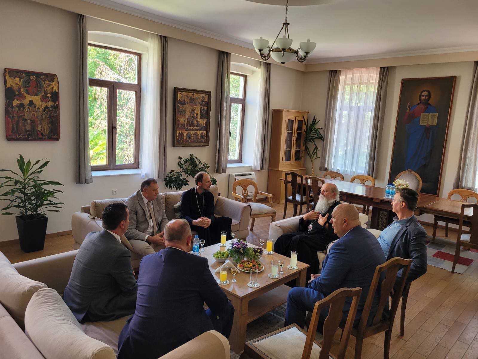 Predsjednik Republike Srpske Milorad Dodik, gradonačelnik Trebinja Mirko Ćurić i direktor Elektroprivrede Republike Srpske Luka Petrović razgovarali su danas sa Njegovim visokopreosveštenstvom mitropolitom zahumsko-hercegovačkim i primorskim Dimitrijem i Njegovim visokopreosveštenstvom mitropolitom raško-prizrenskim Teodosijem.