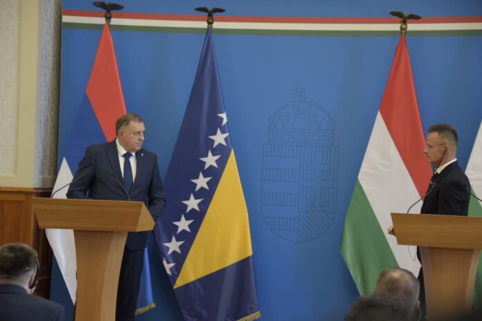 – Zahvalan sam za pomoć koju nam pružate u realizaciji programa i projekata i o tome smo danas razgovarali i konstatovali da to daje dobre rezultate, da to treba da nastavimo. Bez vaše pažnje i razumijevanja imali bismo veće probleme nego što ih imamo – rekao je Dodik na zajedničkoj konferenciji sa mađarskim ministrom spoljnih poslova i trgovine Peterom Sijartom.