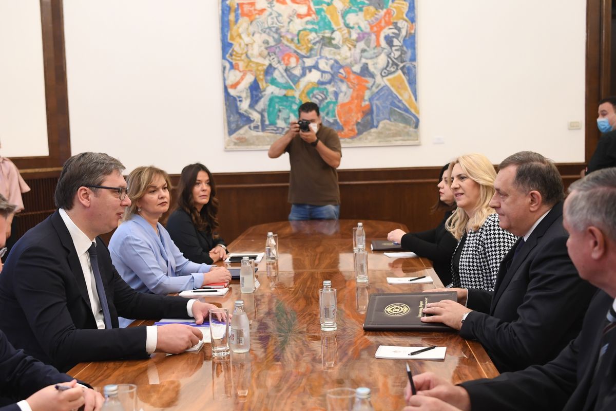 Sastanku u zgradi Generalnog sekretarijata predsednika Republike prisustvali su i predsjednica Republike Srpske Željka Cvijanović i predsjednik Vlade Srpske Radovan Višković.