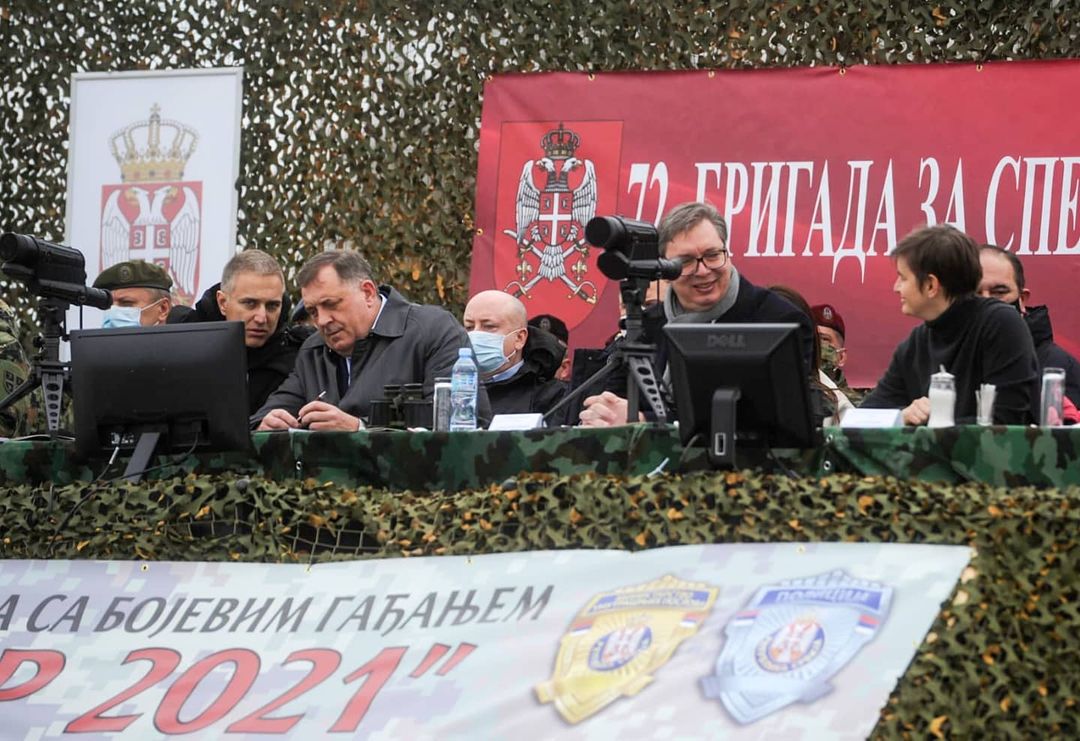 Na poligonima „Orešac“ i „Pasuljanske livade“ danas je održana vježba Vojske Srbije i policije pod nazivom „Odgovor 2021“, kojoj su prisustvovali predsjednik Srbije Aleksandar Vučić i Dodik.