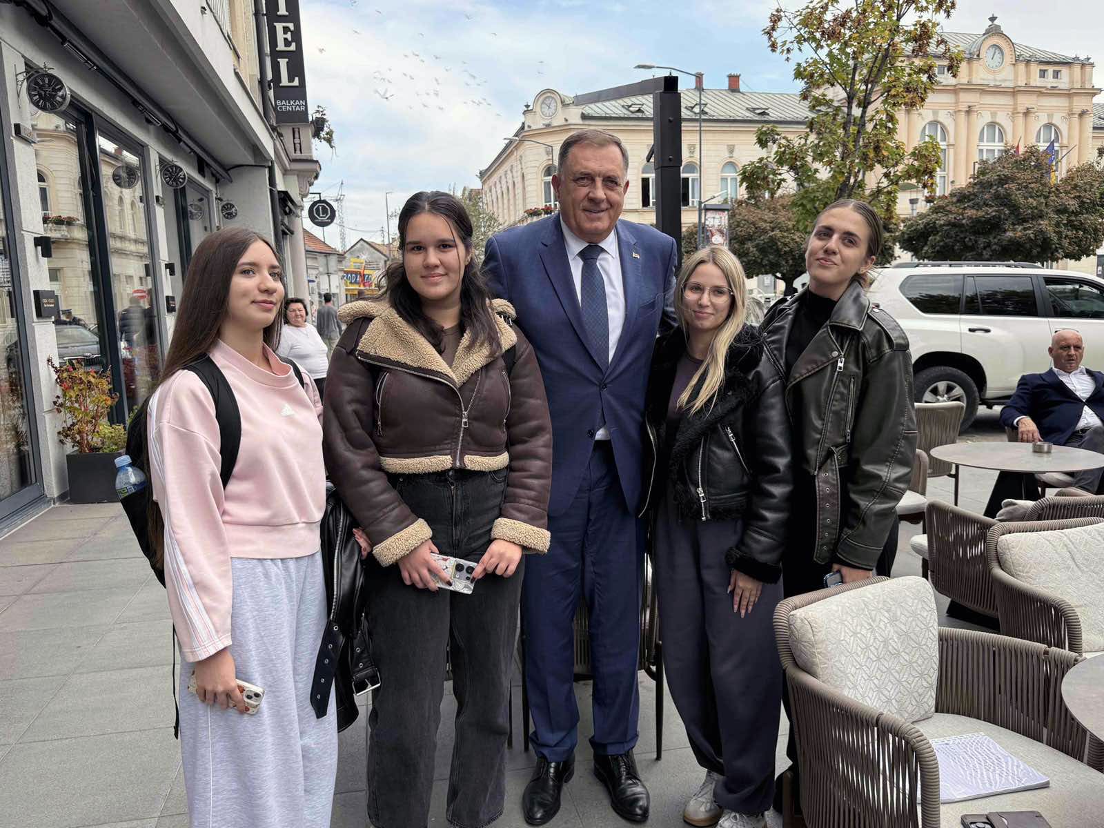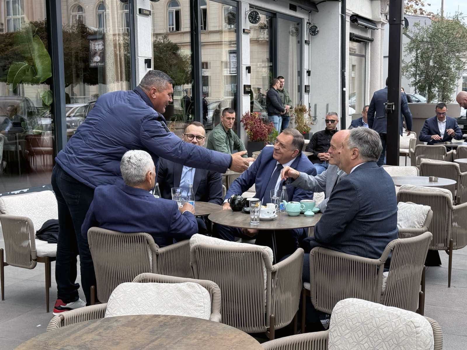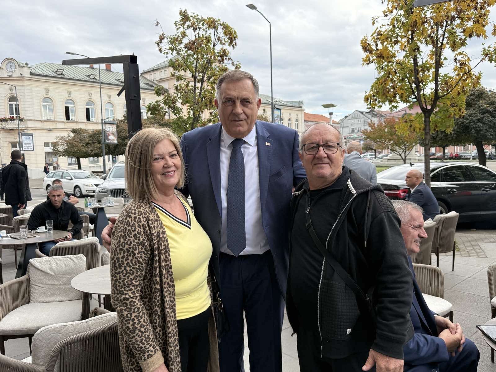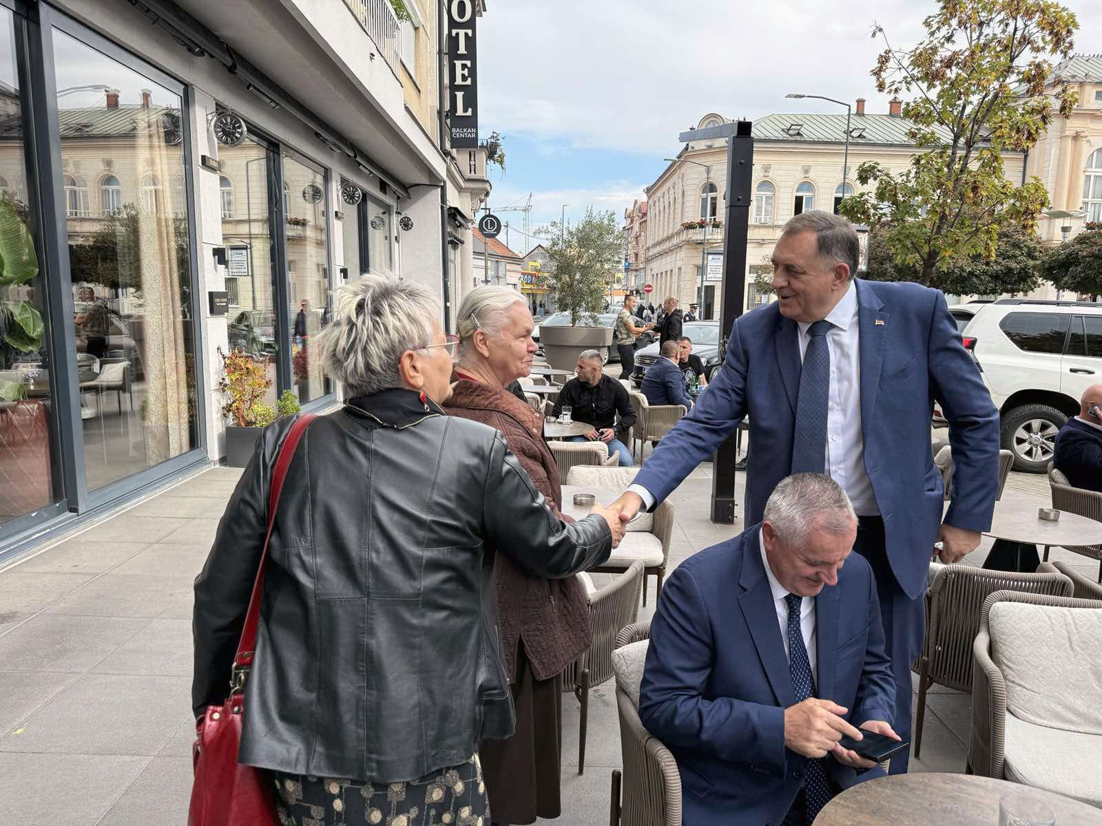 Mnogi od građana prišli su da se rukuju sa Dodikom dok je sjedio u bašti jednog kafića u centru grada.