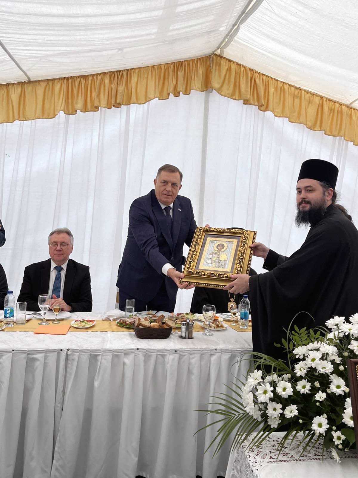 Iguman Manastira Sergije tokom svečnosti povodom manastirske slave – Aranđelovdana uručio Dodiku ikonu Svetog prvomučenika i arhiđakona Stefana koji se proslavlja 9. januara.
