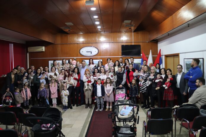 Gradonačelnik Dervente Igor Žunić upriličio je danas prijem za 65 majki koje su od avgusta do novembra rodile 66 beba, 37 dječaka i 29 djevojčica.