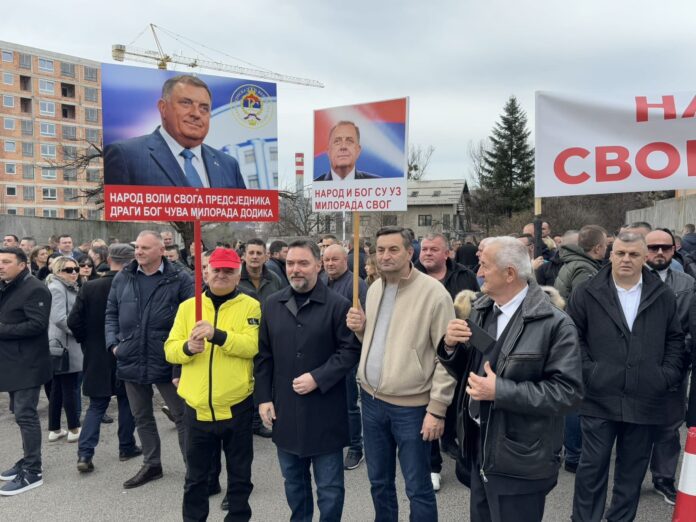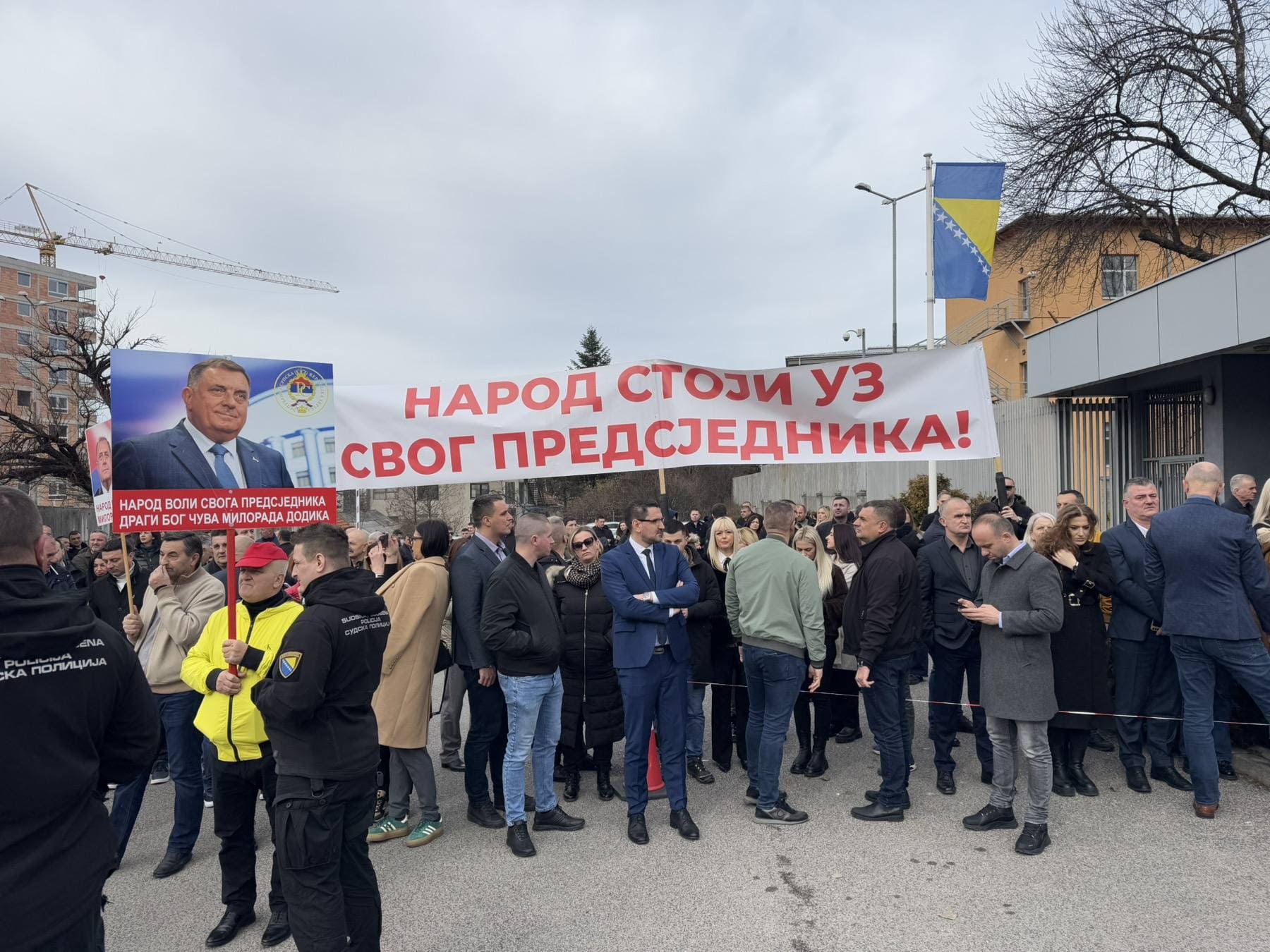 Ispred Suda BiH u Sarajevu okupio se veliki broj građana i zvaničnika iz Republike Srpske kako bi još jednom pružili čvrstu podršku predsjedniku Republike Srpske Miloradu Dodiku i vršiocu dužnosti direktora „Službenog glasnika Republike Srpske“ Milošu Lukiću.