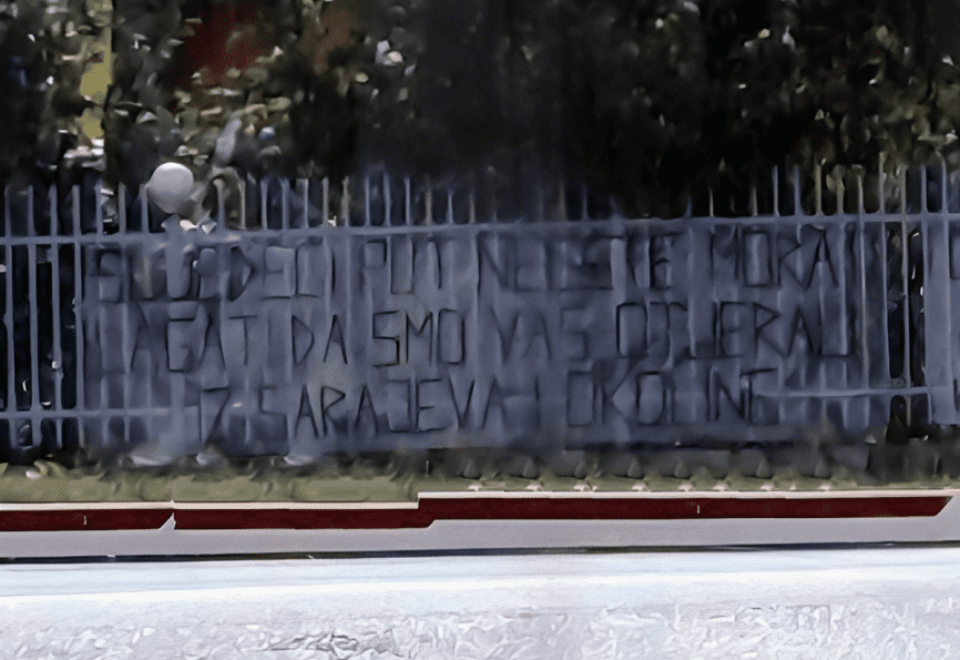Na transparentima je pisalo „Sljedeći put nećete morati lagati da smo vas otjerali iz Sarajeva i okoline“ i „Četnici su najveće kukavice“.