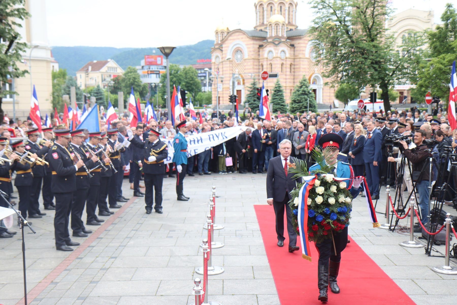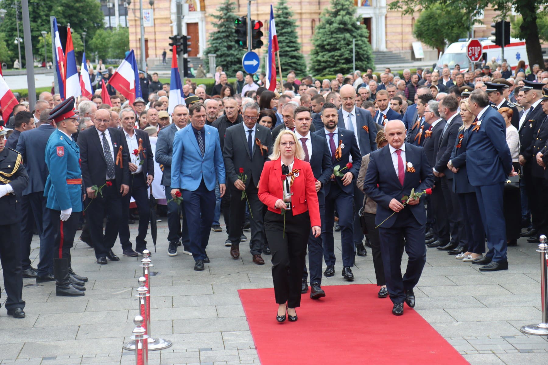U ime institucija Republike Srpske vijenac je položio predsjednik Republike Srpske Milorad Dodik, u pratnji srpskog člana Predsjedništva BiH Željke Cvijanović, predsjednika Narodne skupštine Srpske Nenada Stevandića i predsjednika Odbora Vlade Republike Srpske za njegovanje tradicije oslobodilačkih ratova Danijela Egića.