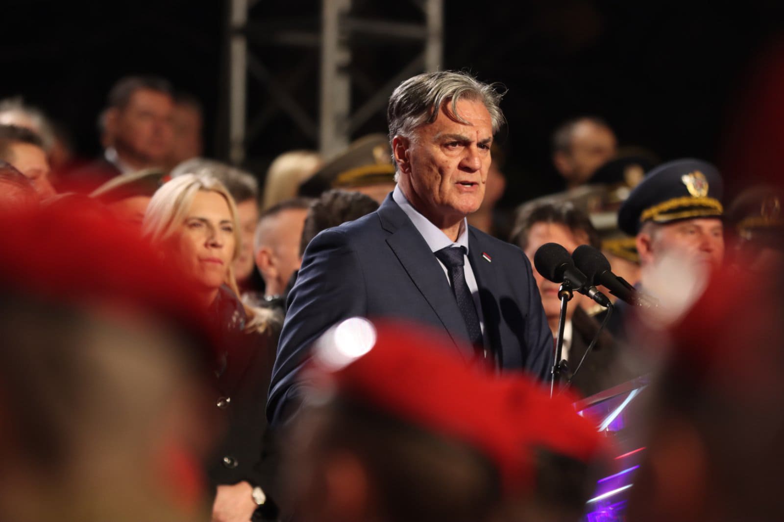 Uvaženi predsjedniče Narodne skupštine Republike Srpske, predsjedničke Vlade Republike Srpske, srpski članu Predsjedništva BiH, poštovani potpredsjedniče Vlade Republike Srbije, poslanici i ministri iz Srpske i Srbije, uvaženi gosti, poštovani učesnici defilea, junaci i sinovi i kćeri junaka, dragi i naročito uvaženi građani, imam izuzetnu čast da vas pozdravim u ime predsjednika Republike Srpske gospodina Milorada Dodika!