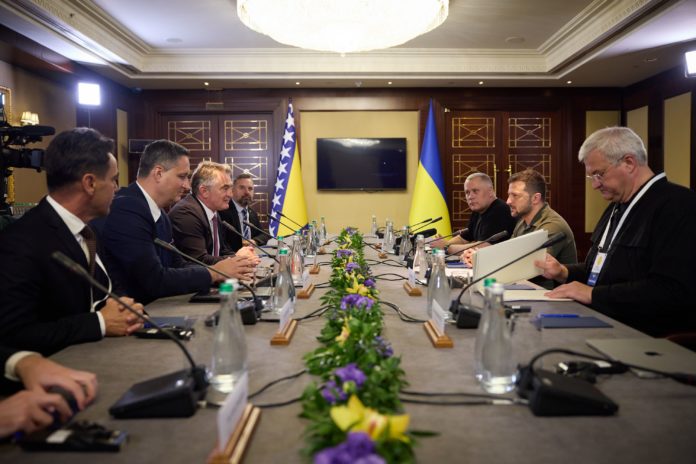 Predsjedavajući i hratski član Predsjedništva BiH Željko Komšić i bošnjački član Predsjendištva BiH Denis Bećirović „uporedili“ su tokom posjete Ukrajani sukobe u ovoj zemlji sa BiH.