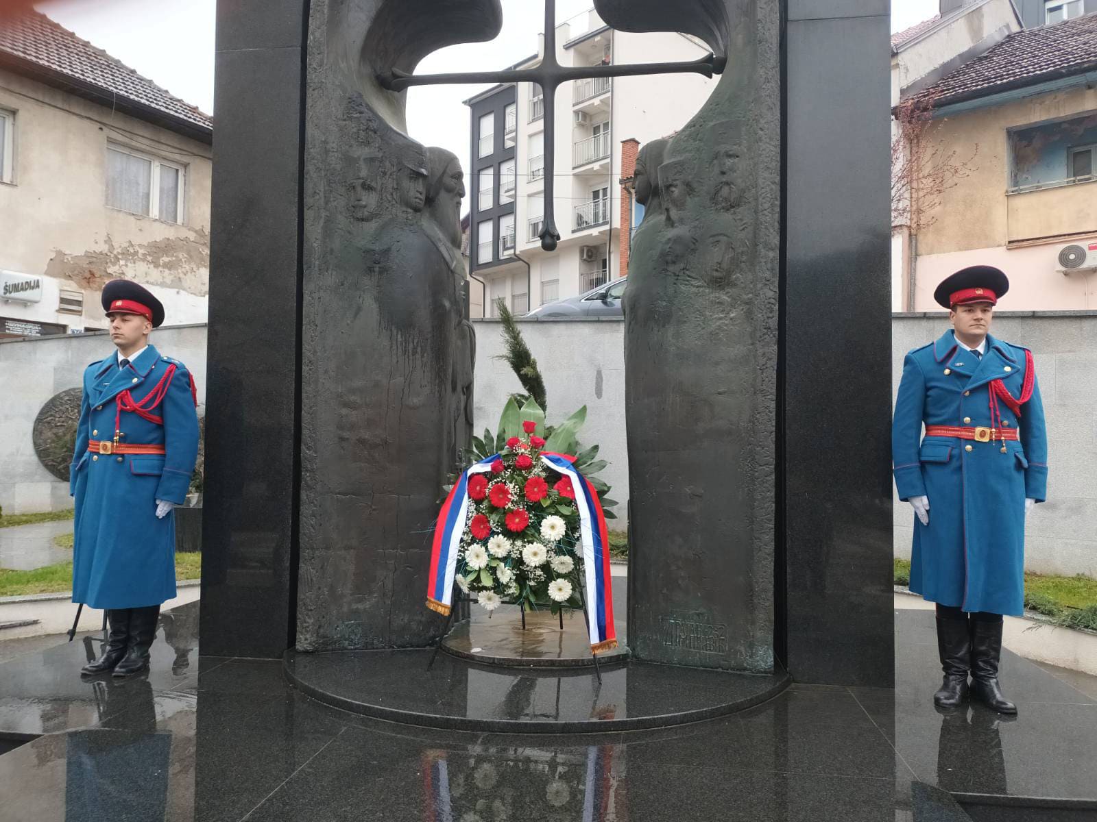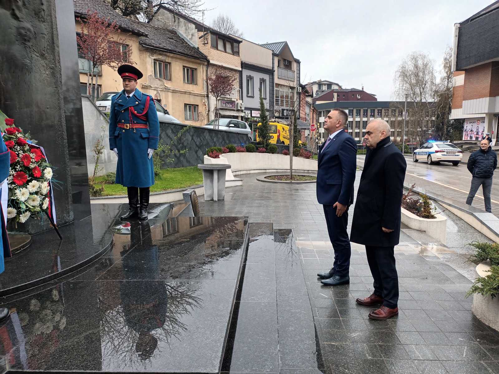 Predsjednik Vlade Republike Srpske Savo Minić i ministar saobraćaja i veza Zoran Stevanović, na početku današnje službene posjete Zvorniku, položili su vijenac na Centralno spomen-obilježje borcima Odbrambeno-otadžbinskog rata.