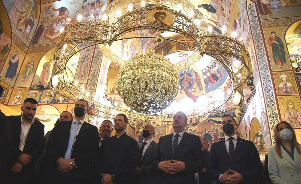 Službi u Hramu Hristovog Vaskrsenja u Podgorici prisustvovali su crnogorski premijer Zdarvko Krivokapić, predsjednik parlamenta Aleksa Bečić, ministar prosvjete, kulture, nauke i sporta Vesna Bratić, te lideri Demokratskog fronta Andrija mandić i Milan Knežević.