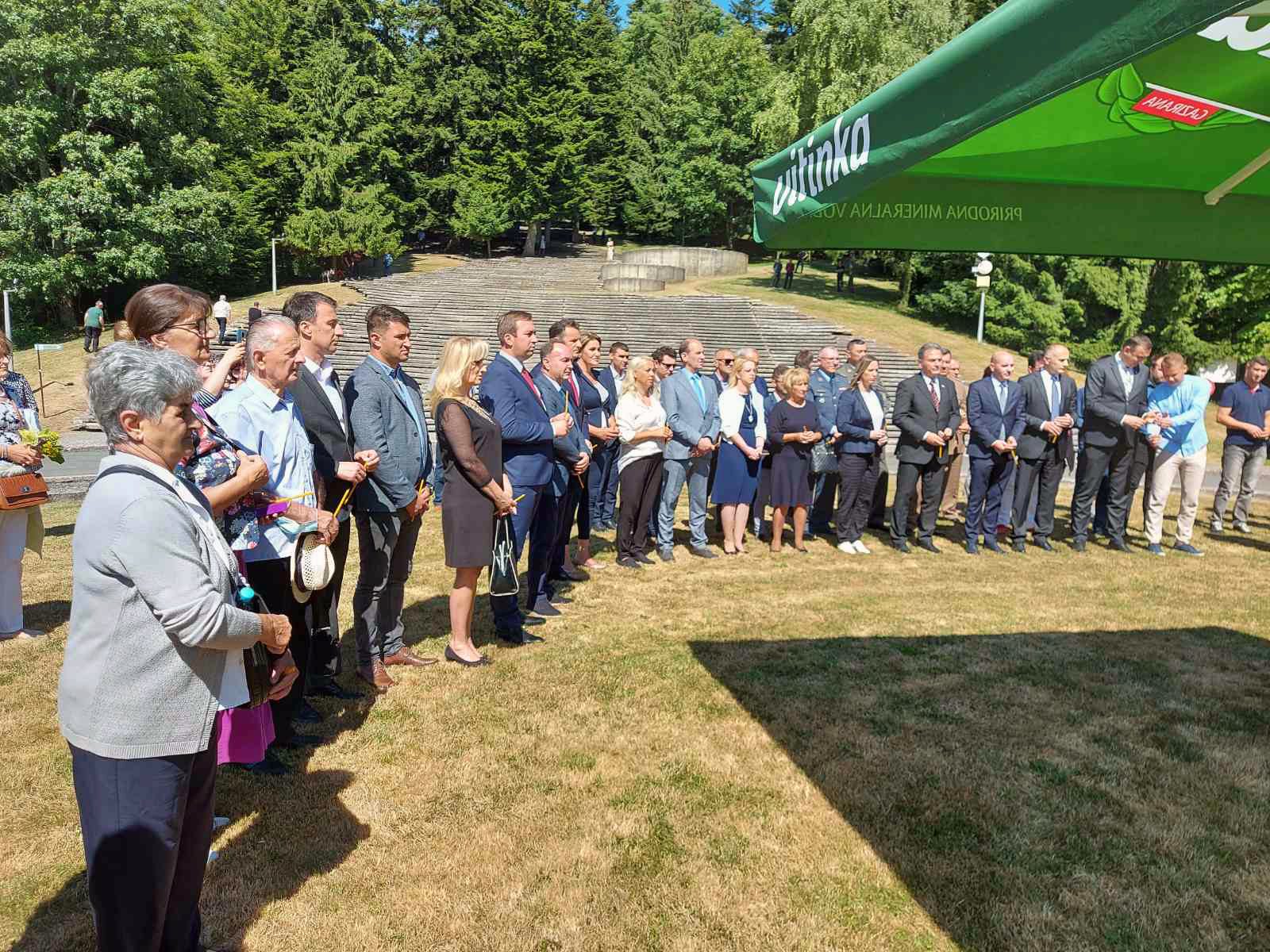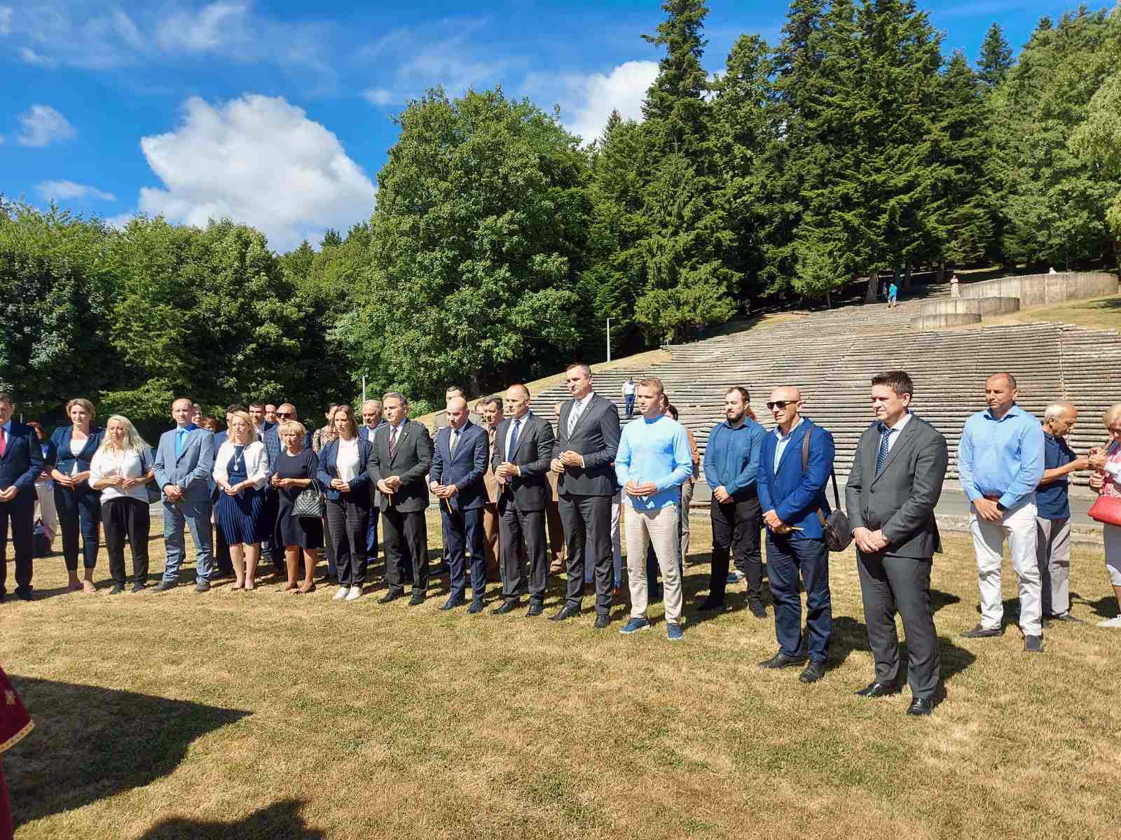 Nakon parastosa položeni su vijenci i cvijeće na centralni spomenik, a potom su se obratili zvaničnici i održan je umjetnički program.