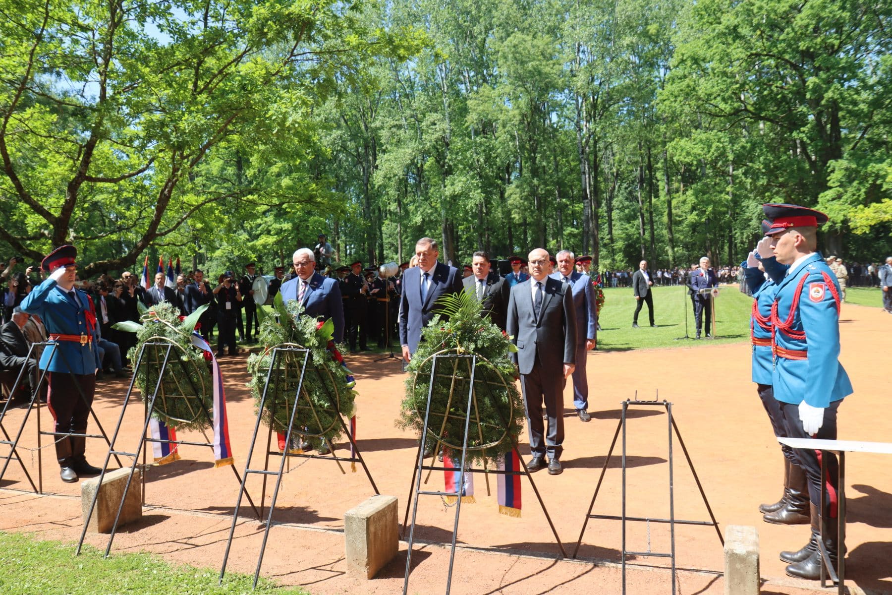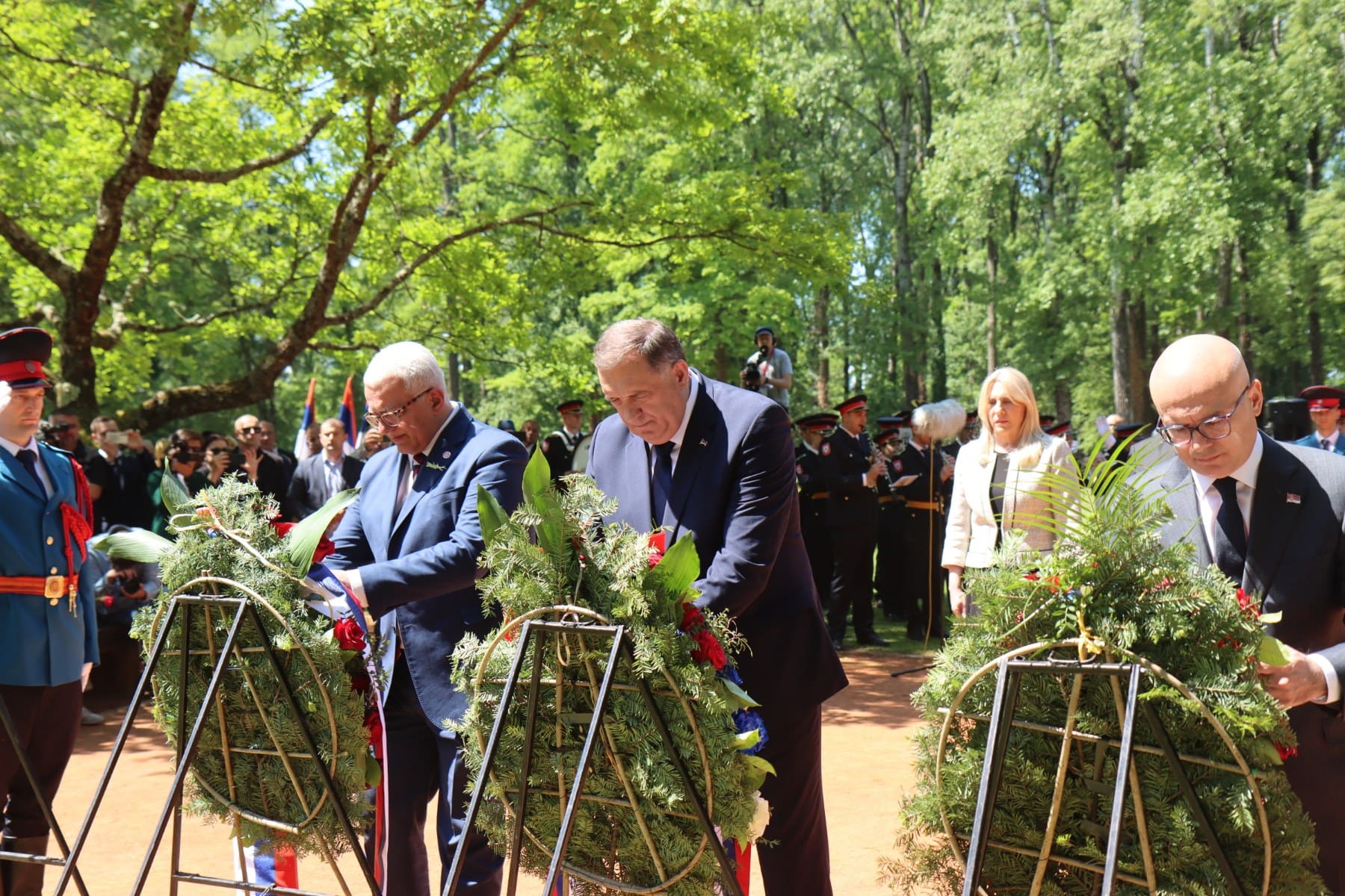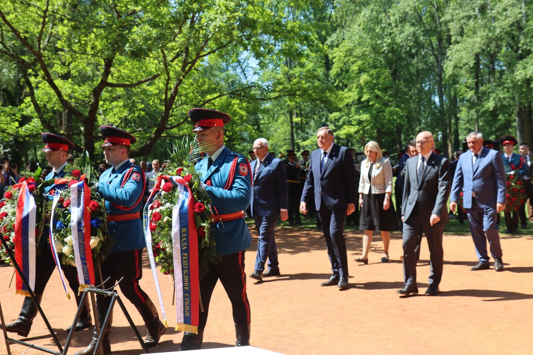 Prethodno su zvaničnici Srpske i Srbije i ostale delegacije položili vijence i cvijeće na grobnom polju „Topole“.