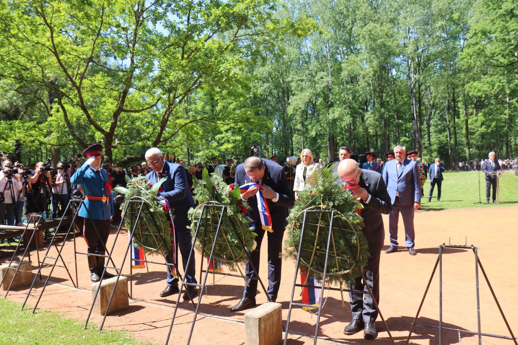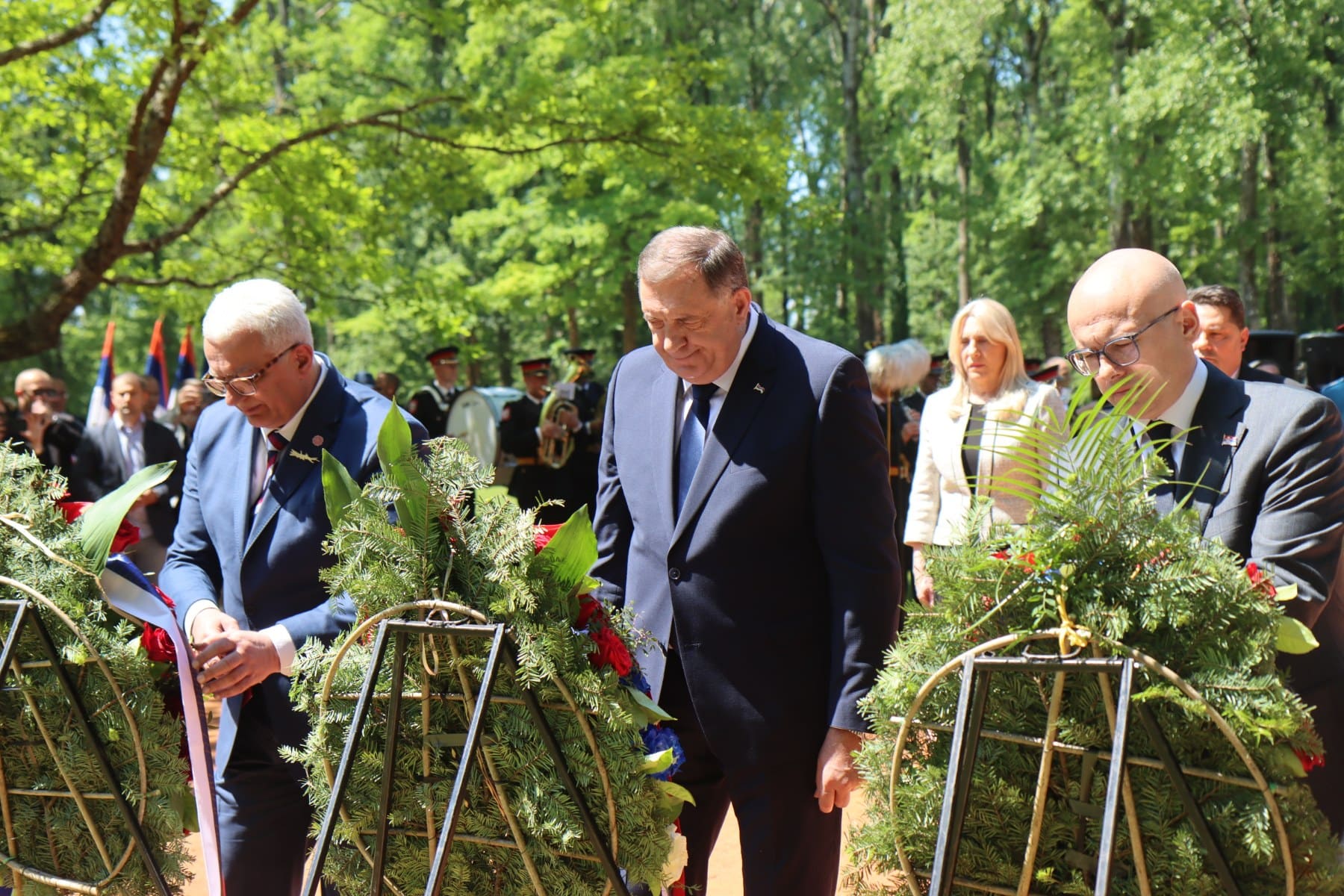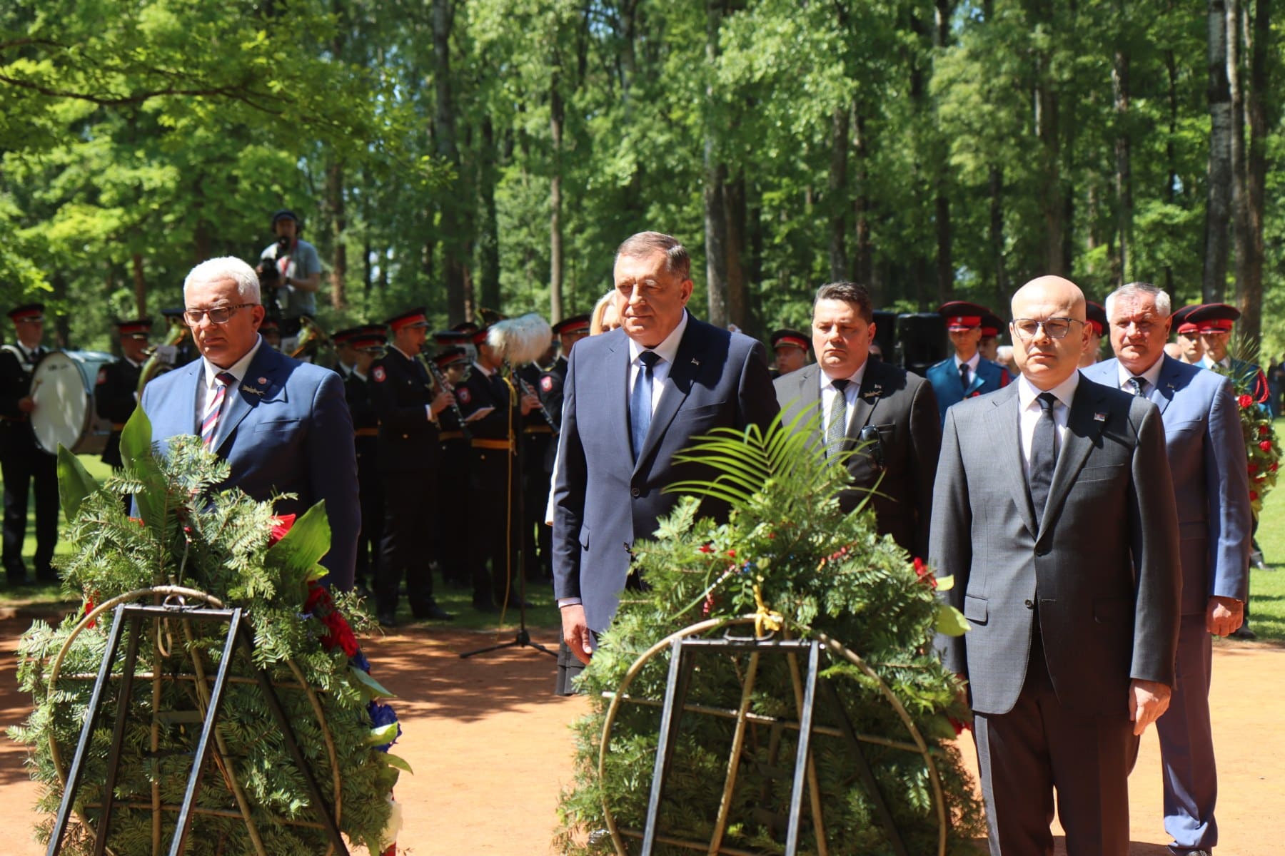 Prethodno su zvaničnici Srpske i Srbije i ostale delegacije položili vijence i cvijeće na grobnom polju „Topole“.