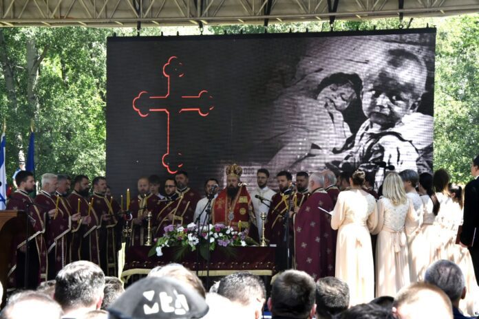 Pomen srpskim žrtvama služilo je sveštenstvo Srpske pravoslavne crkve. Nakon pomena srpskim žrtava pročitane su jevrejska i romska molitva.