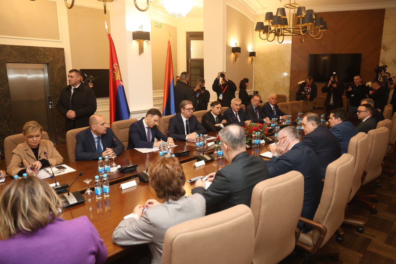 Po završetku sastanka delegacija, predviđene su izjave predsjednika Republike Srpske i Srbije.