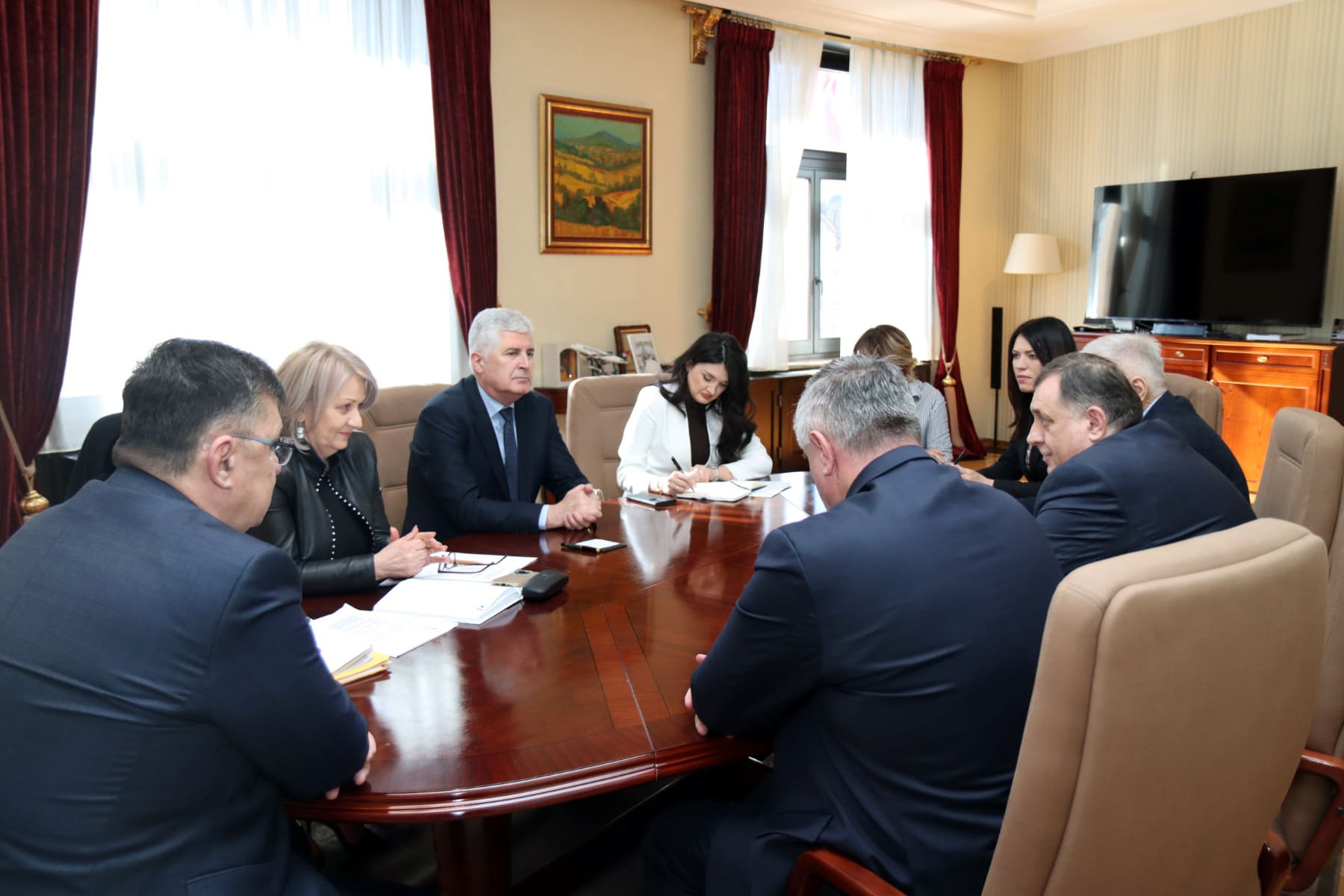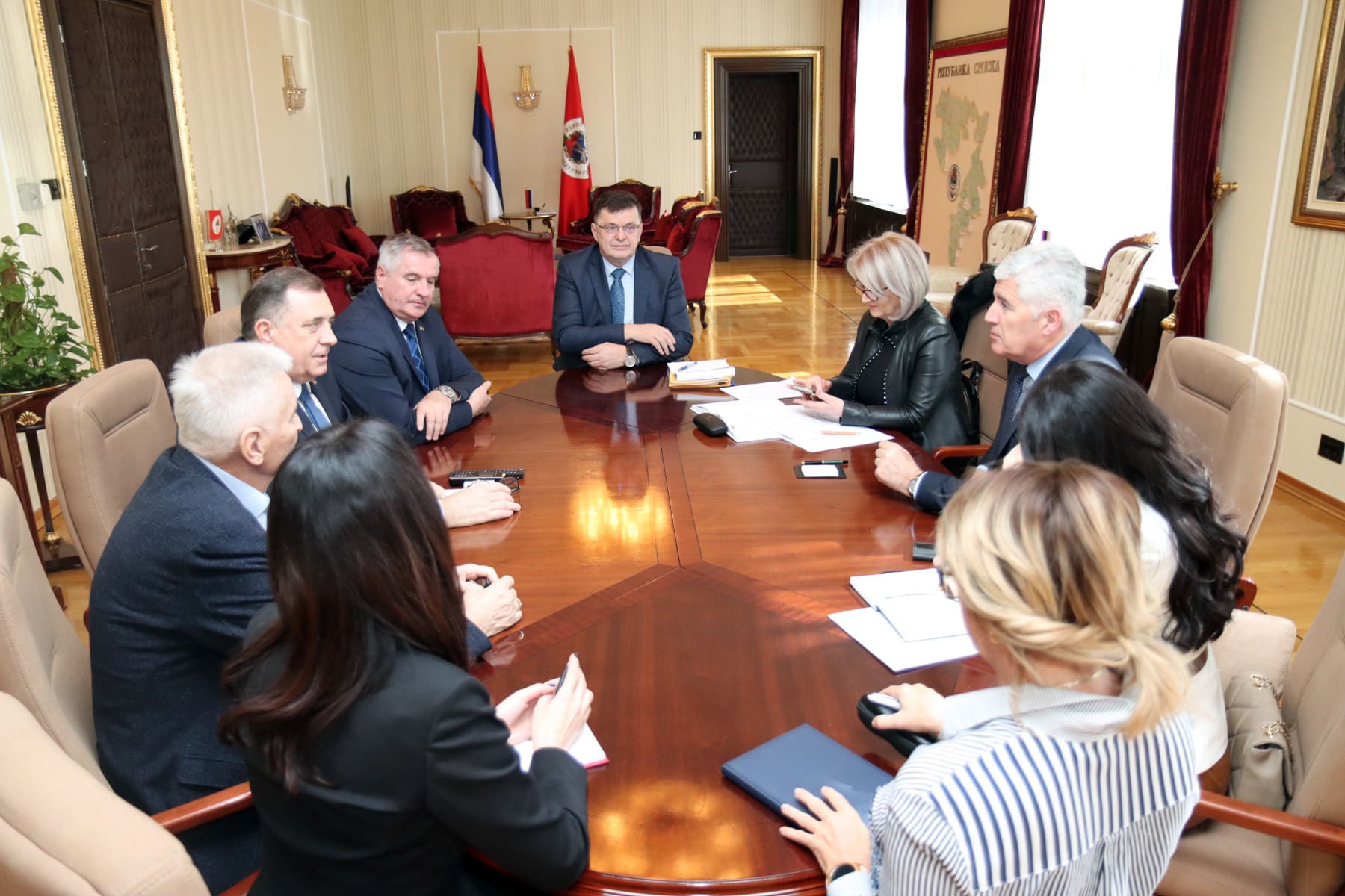 U Banjaluci je u održan sastanak predsjednika Republika Srpske Milorada Dodika, predsjedavajuće Savjeta ministara Borjane Krišto i zamjenika predsjedavajućeg Doma naroda Parlamentarne skupštine BiH Dragana Čovića.