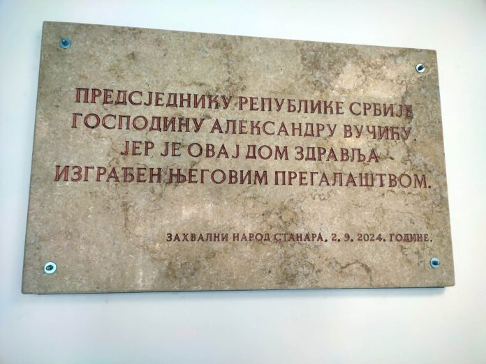 – Predsjedniku Republike Srbije Aleksandru Vučiću jer je ovaj dom zdravlja izgrađen njegovim pregalaštvom. Zahvalni narod Stanara – piše na ploči.